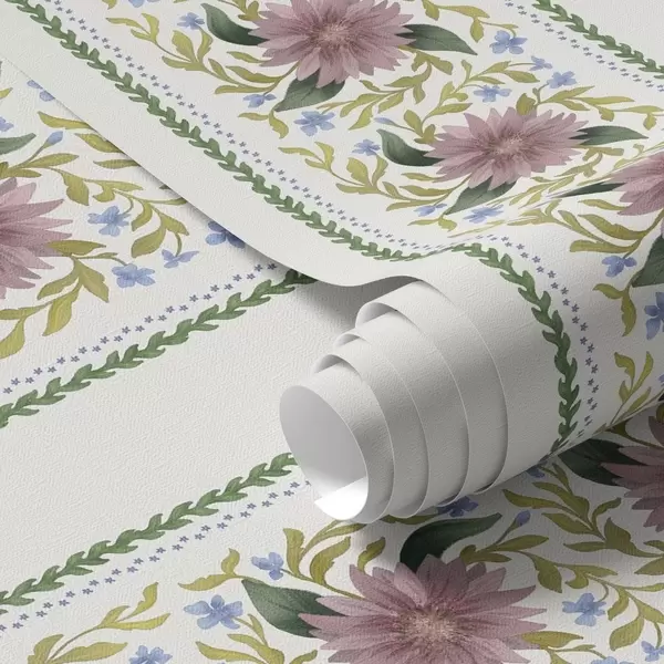 Tapetai Vertikalios gėlių juostos alyvinės-mėlynos spalvos tonais Nr. a00809