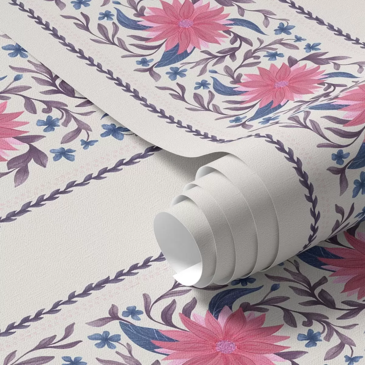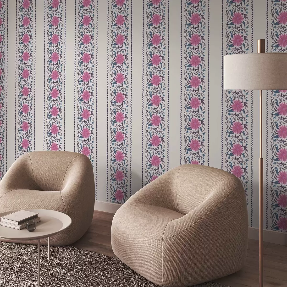Tapetai Vertikalios gėlių juostos rausvai violetiniais atspalviais Nr. a00810