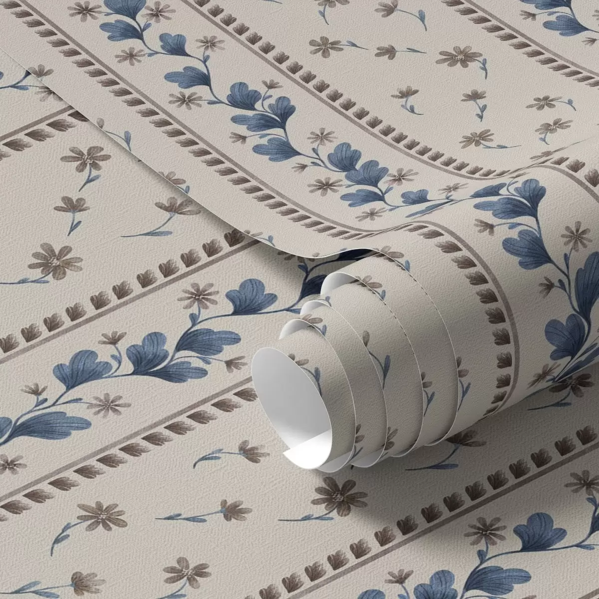 Tapetai Vertikalios gėlių juostos mėlynai rudos spalvos tonais Nr. a00811v3