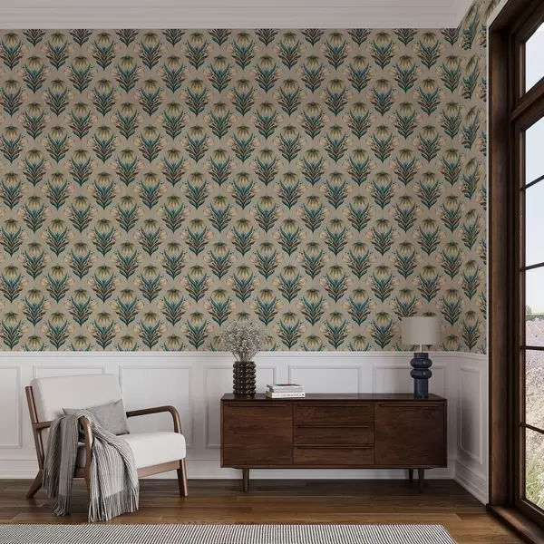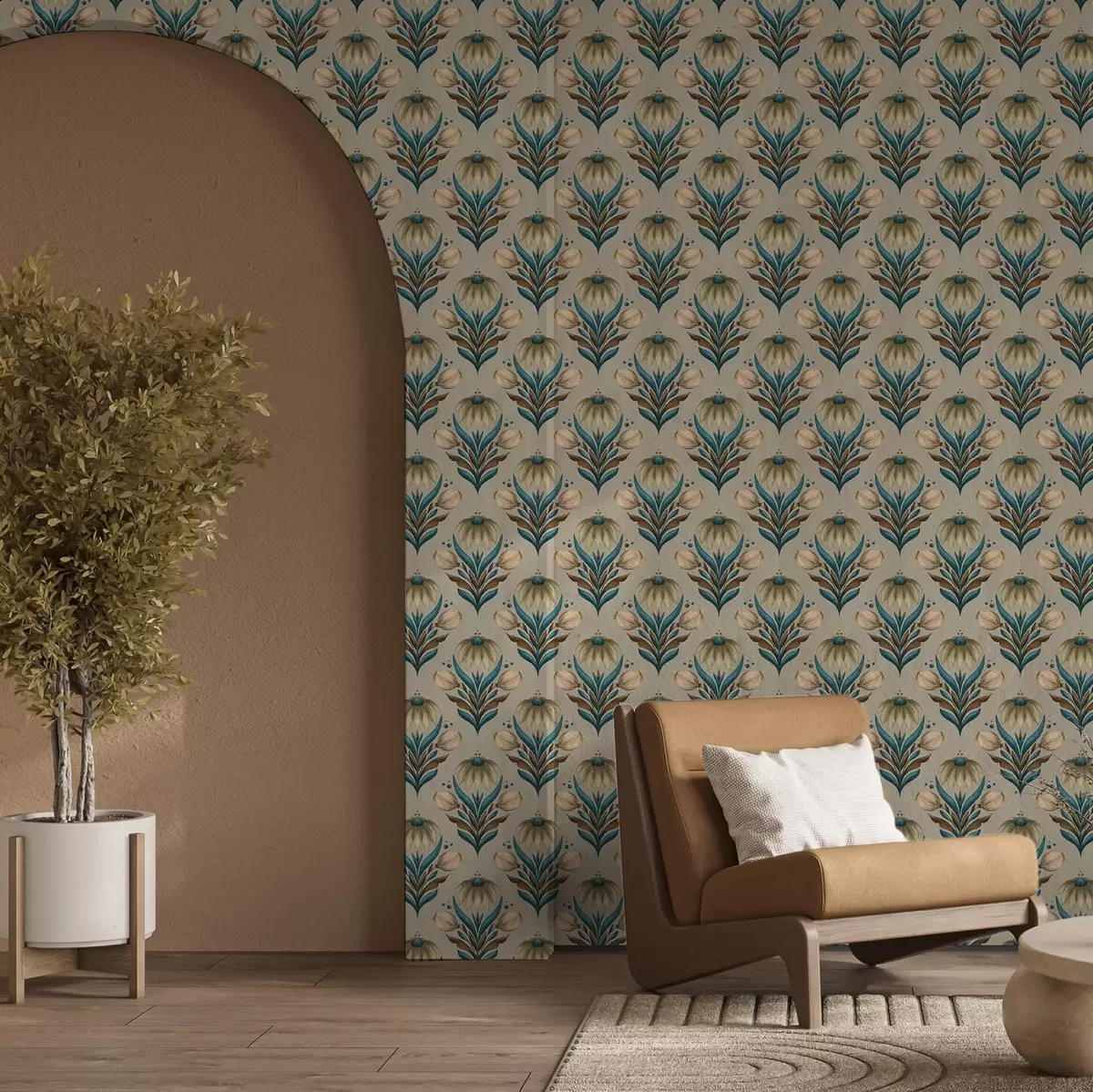 Tapetai Simetriškas gėlių ornamentas šiltų atspalvių Nr. a00812