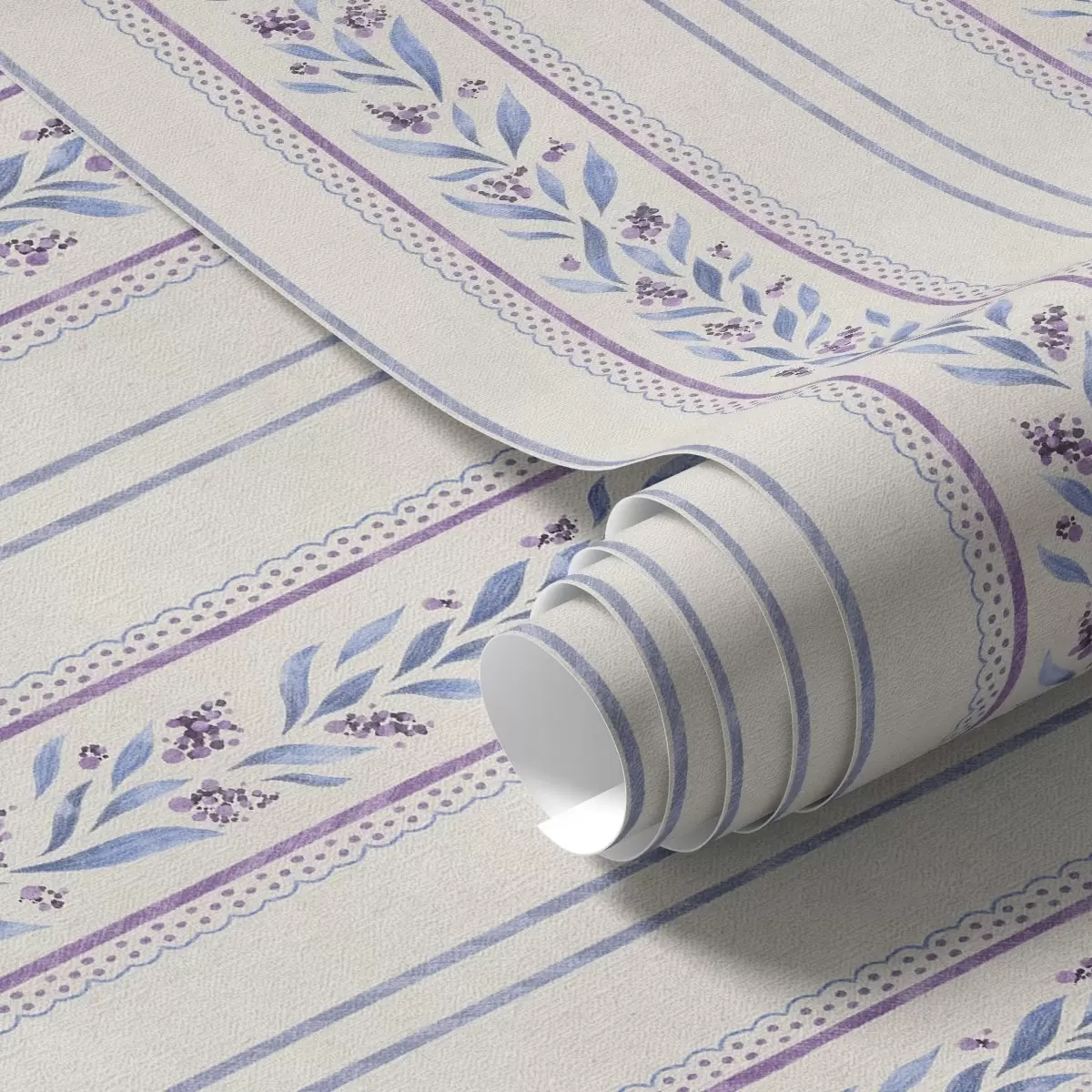Tapetai Vertikalios juostos su levandų girliandomis, smėlio spalvos fonas Nr. a00813v1