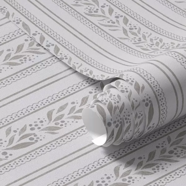 Tapetai Juostelės su nėriniais ir šakelėmis ant šalto balto fono Nr. a00814v1
