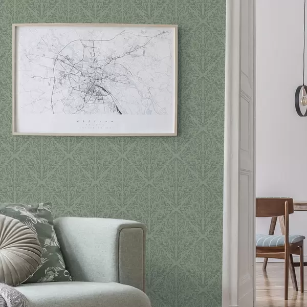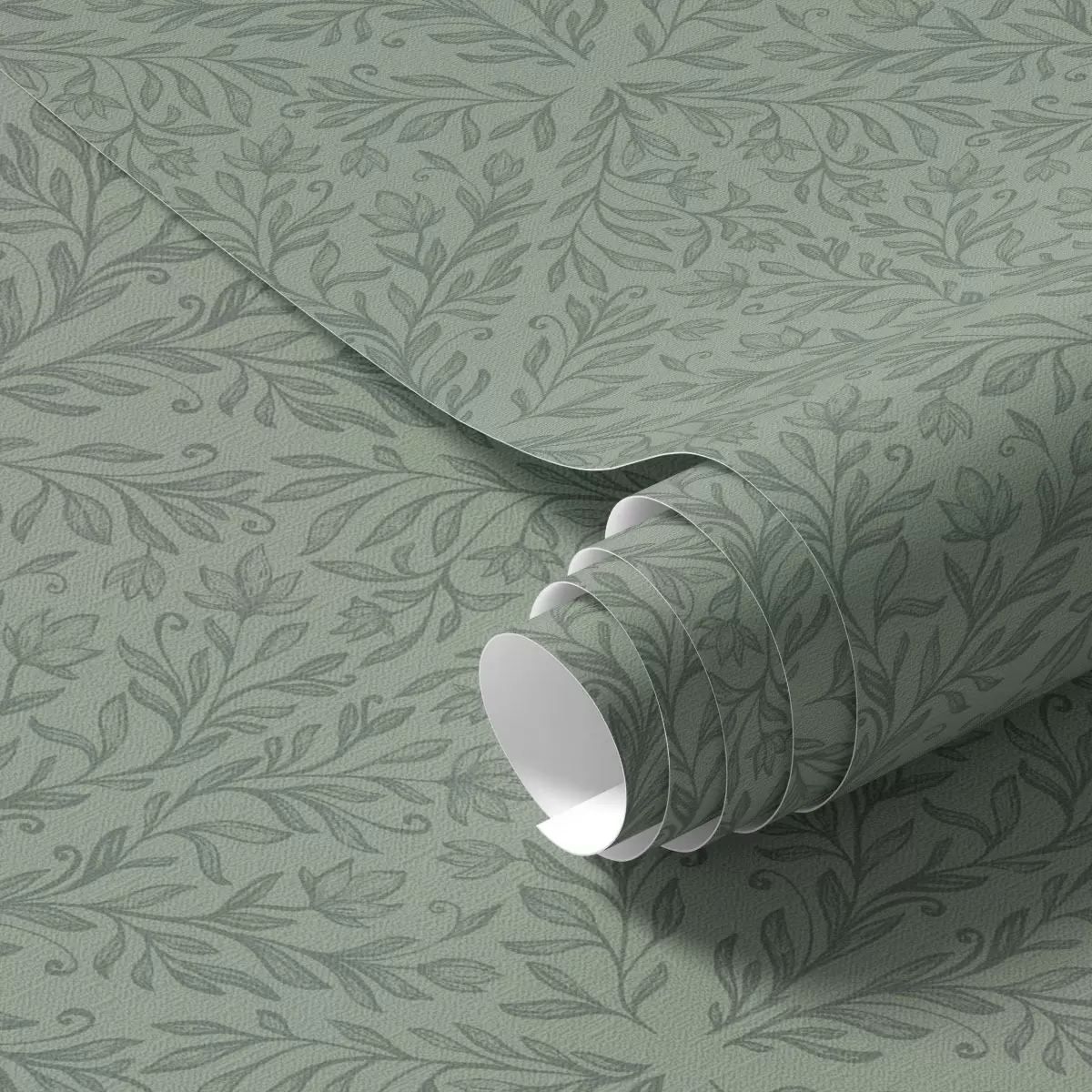 Tapetai Subtilus botaninis damastas švelnios žalios spalvos Nr. a00815v1