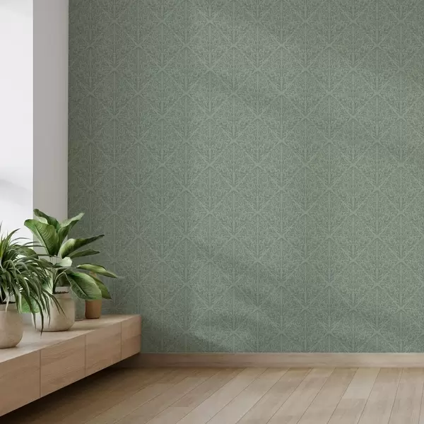 Tapetai Subtilus botaninis damastas švelnios žalios spalvos Nr. a00815v1