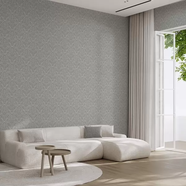 Tapetai Botaninis damastas šviesiai pilkos spalvos su švelniais kontūrais Nr. a00815v2