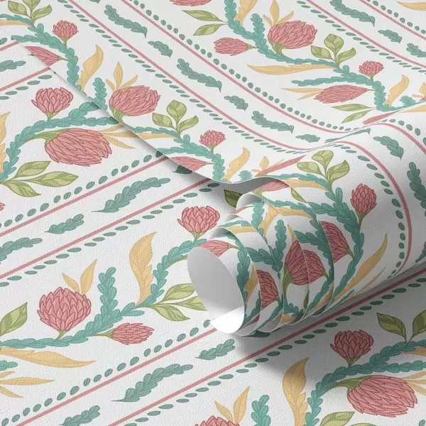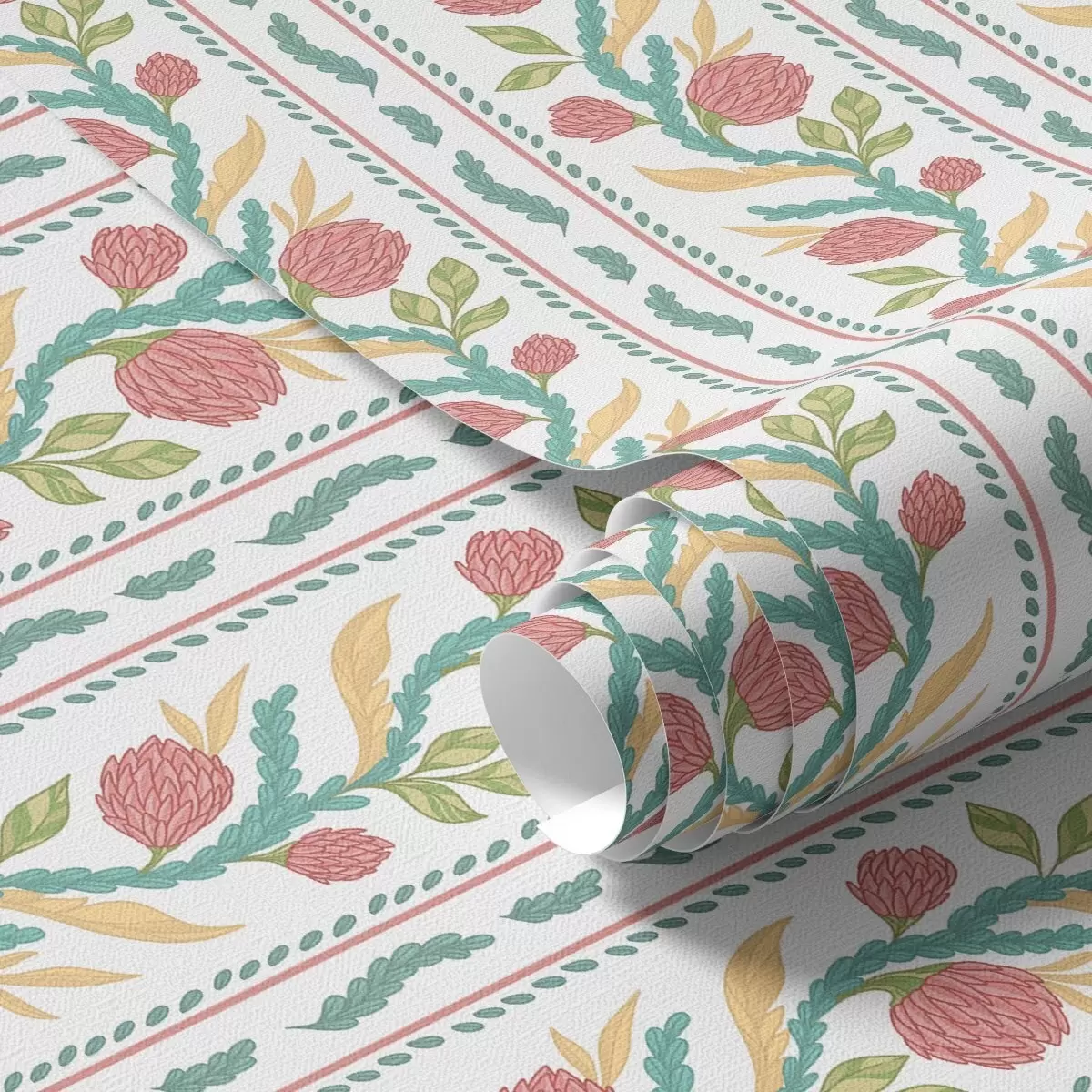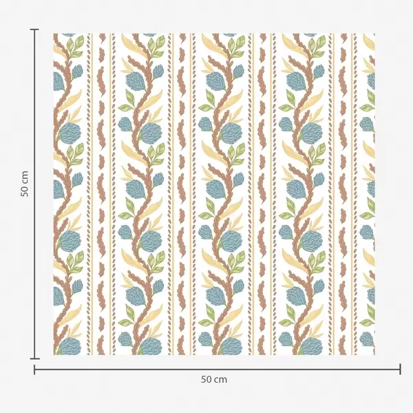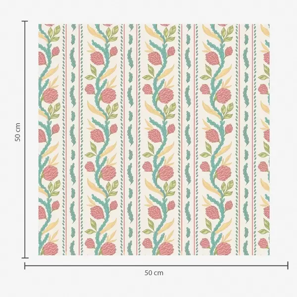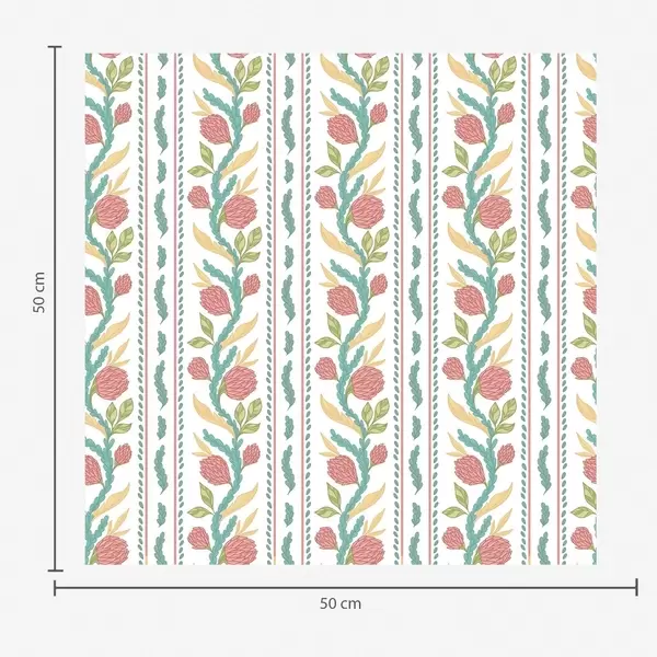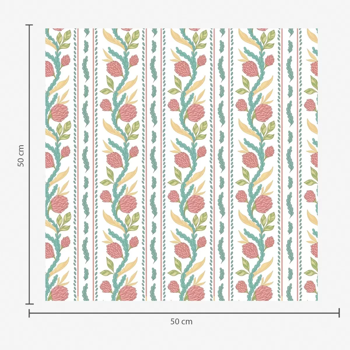 Tapetai Vertikalios juostos su koralų gėlėmis ir turkio spalvos lapais Nr. a00816
