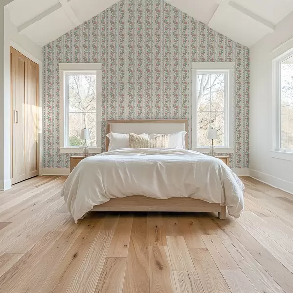 Tapetai Juostelės su koralų pumpurais ant šviesiai kreminės spalvos fono Nr. a00816v1