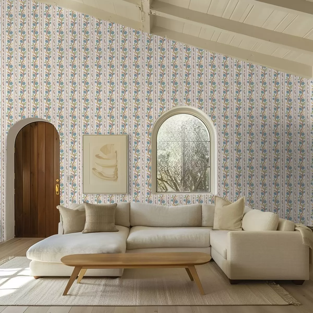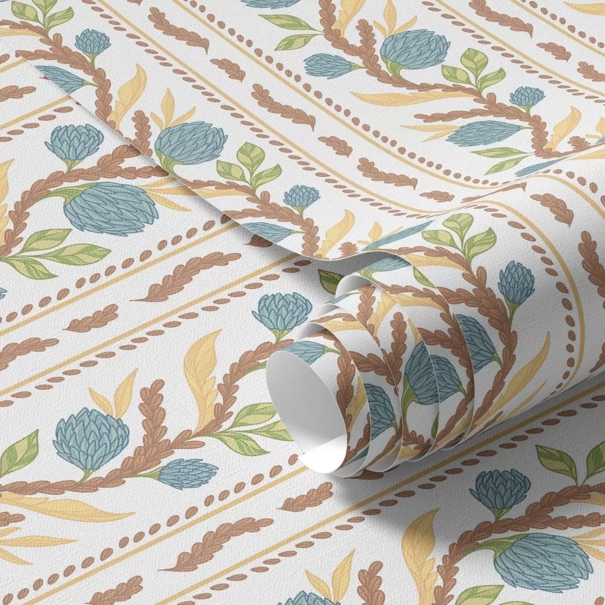 Tapetai Vertikalios puokštės juostos su mėlynomis gėlėmis Nr. a00816v2