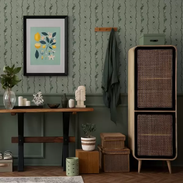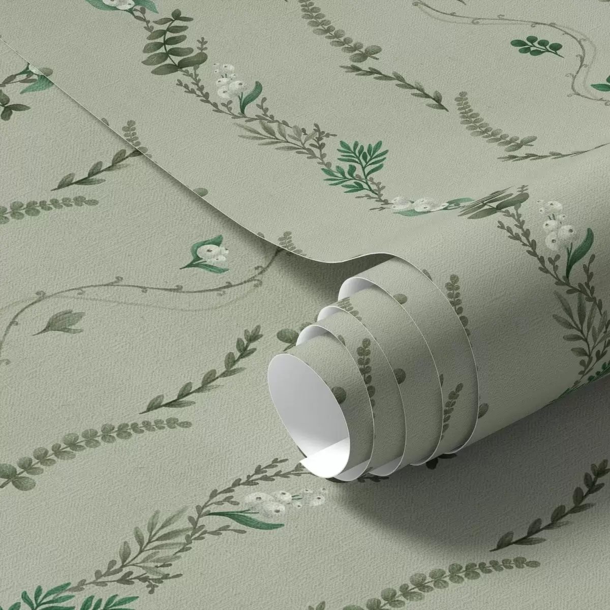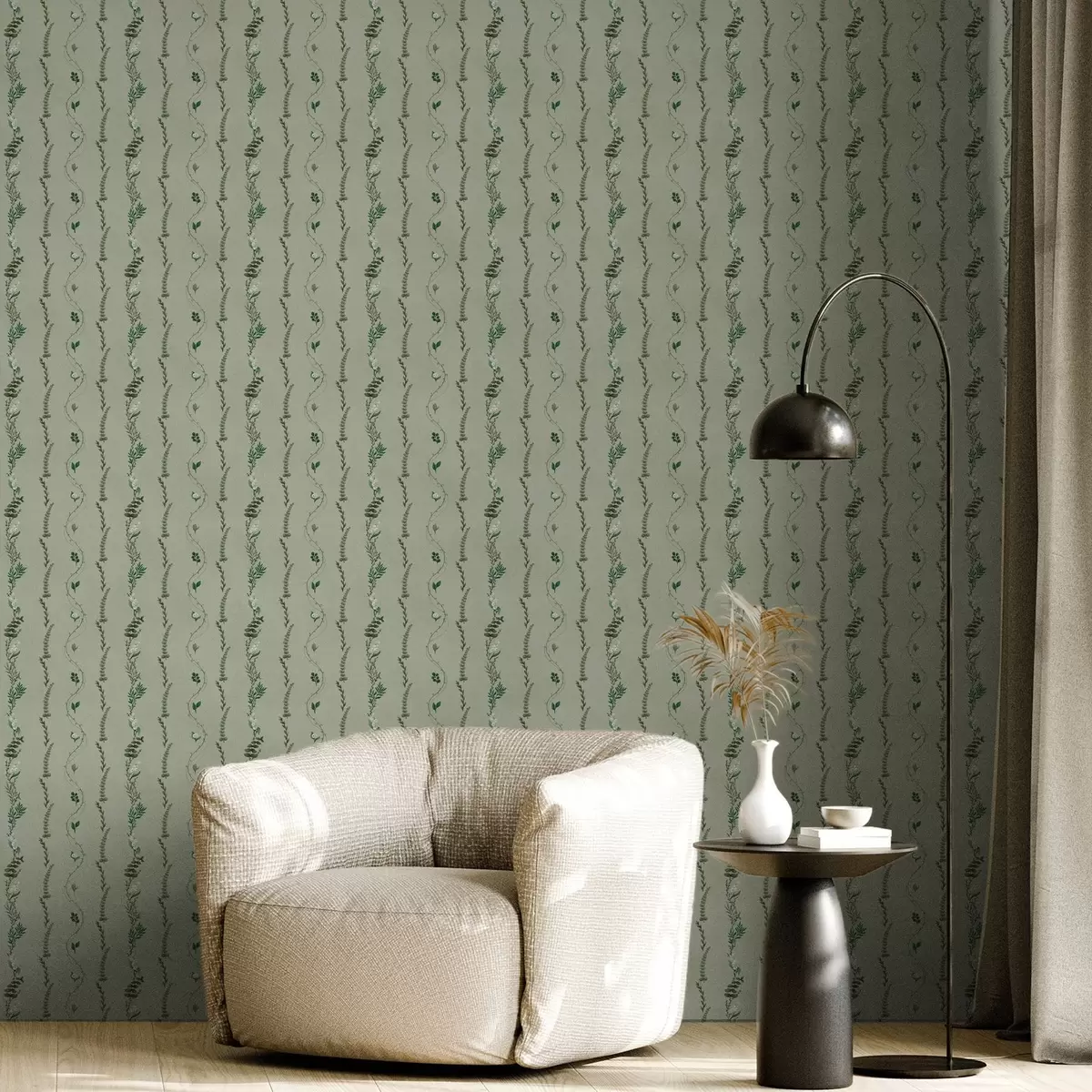Tapetai Vertikalios vynmedžių šakos ir šakelės ant prislopintos žalios spalvos fono Nr. a00817v1