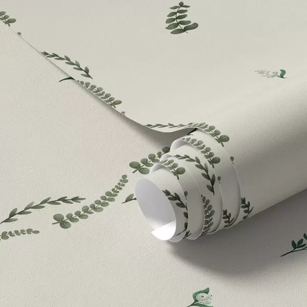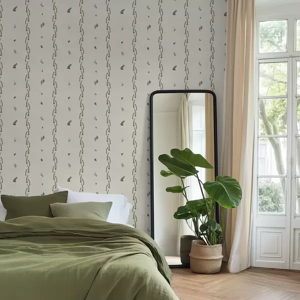 Tapetai Retai išsidėstę žali daigai vertikaliu ritmu, kreminė danga Nr. a00818