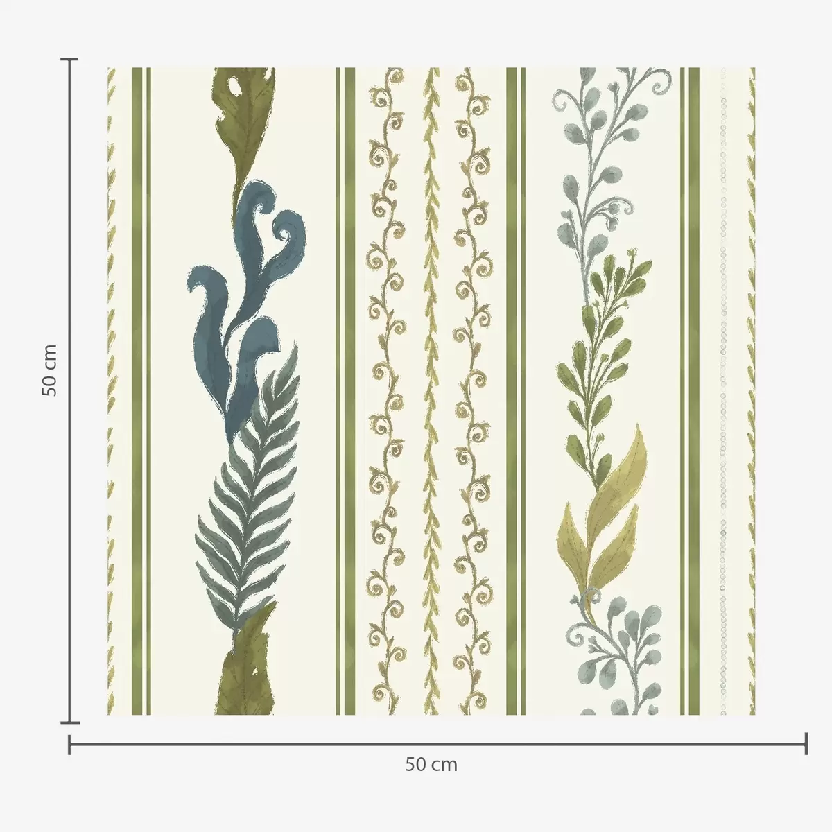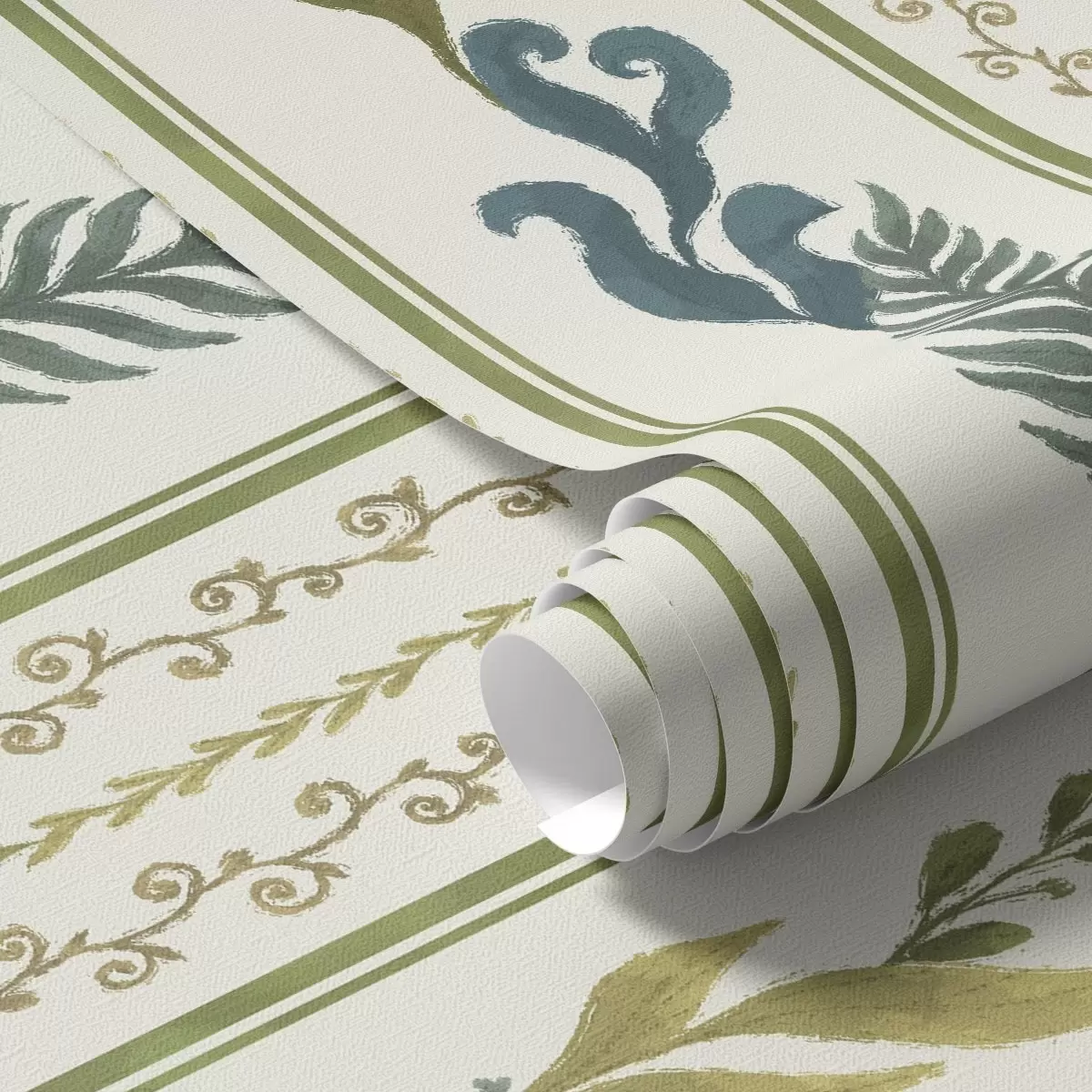 Tapetai Juostos su spiraliniais ornamentais ir didelėmis žaliomis šakomis Nr. a00823