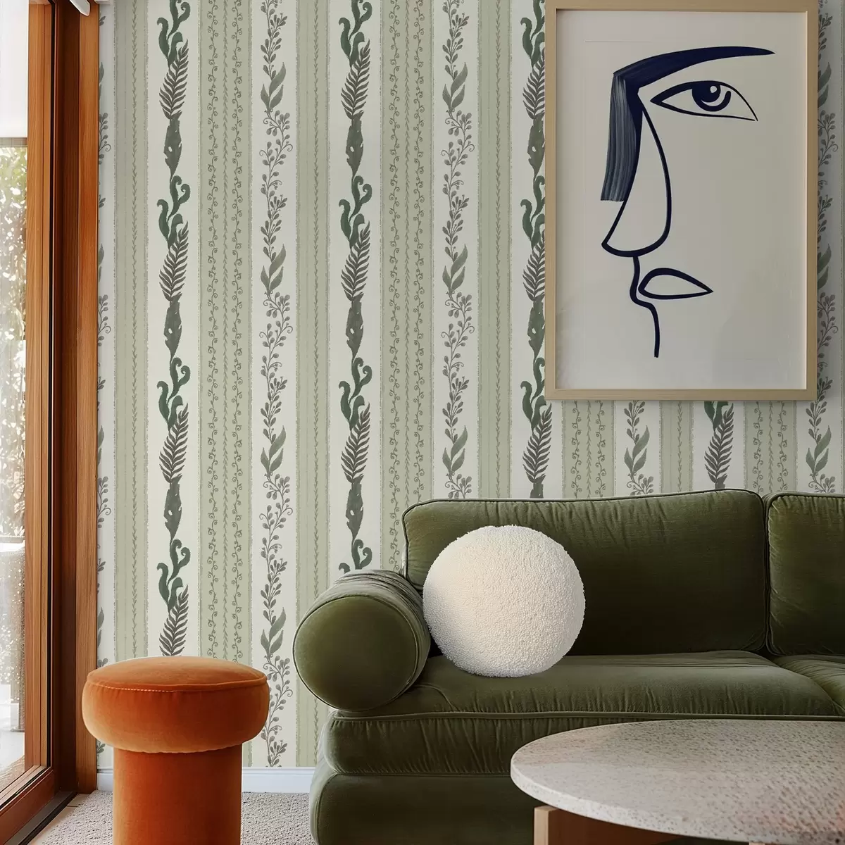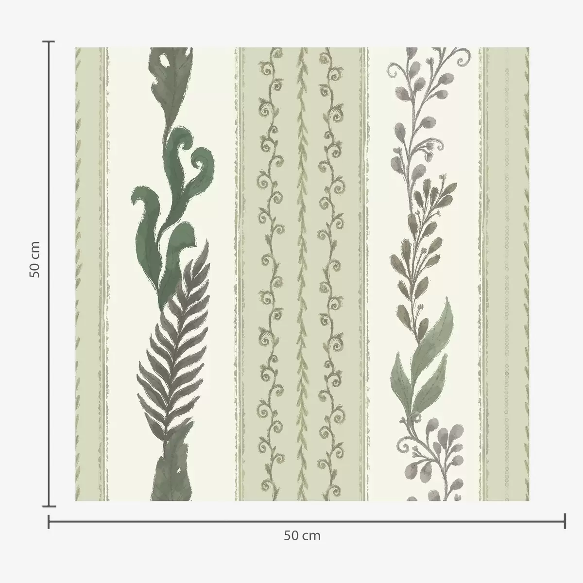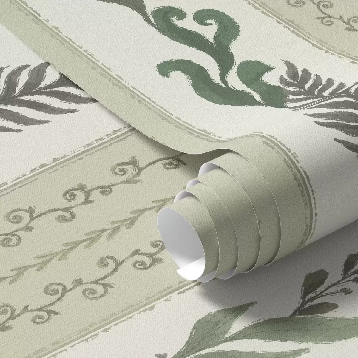 Tapetai Juostos su šakomis žalios ir pilkos spalvos atspalviais, švelnus kontrastas Nr. a00824