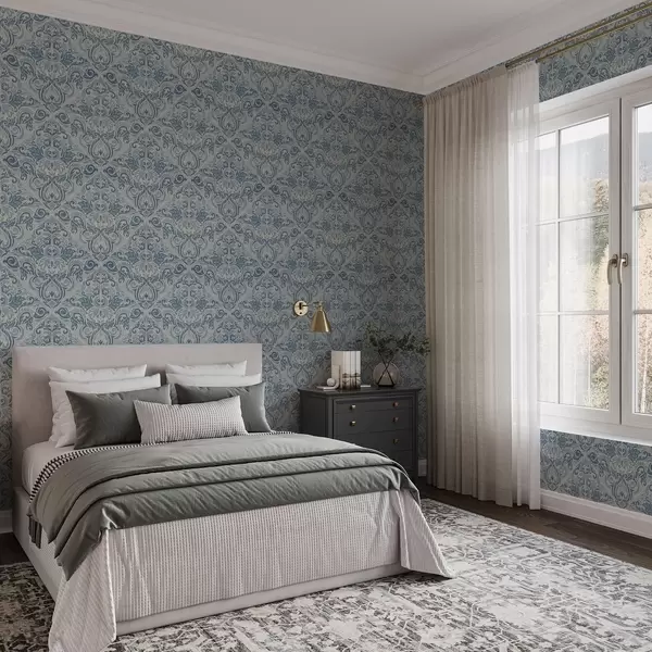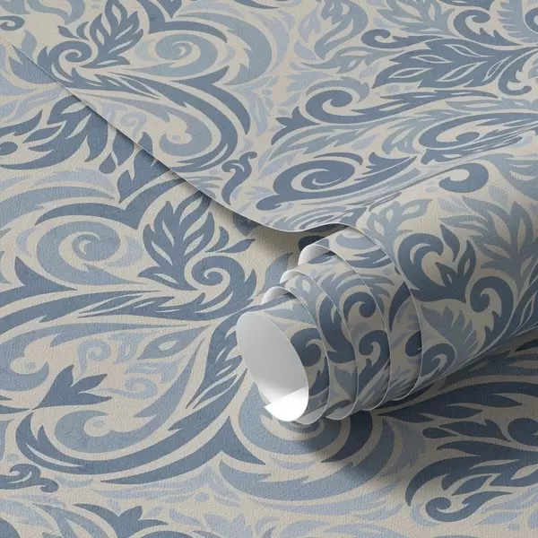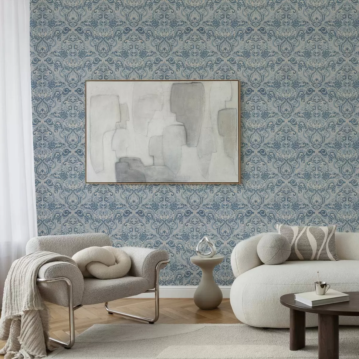 Tapetai Klasikinis damastas, mėlyni motyvai ant kreminės spalvos fono Nr. a00826v1