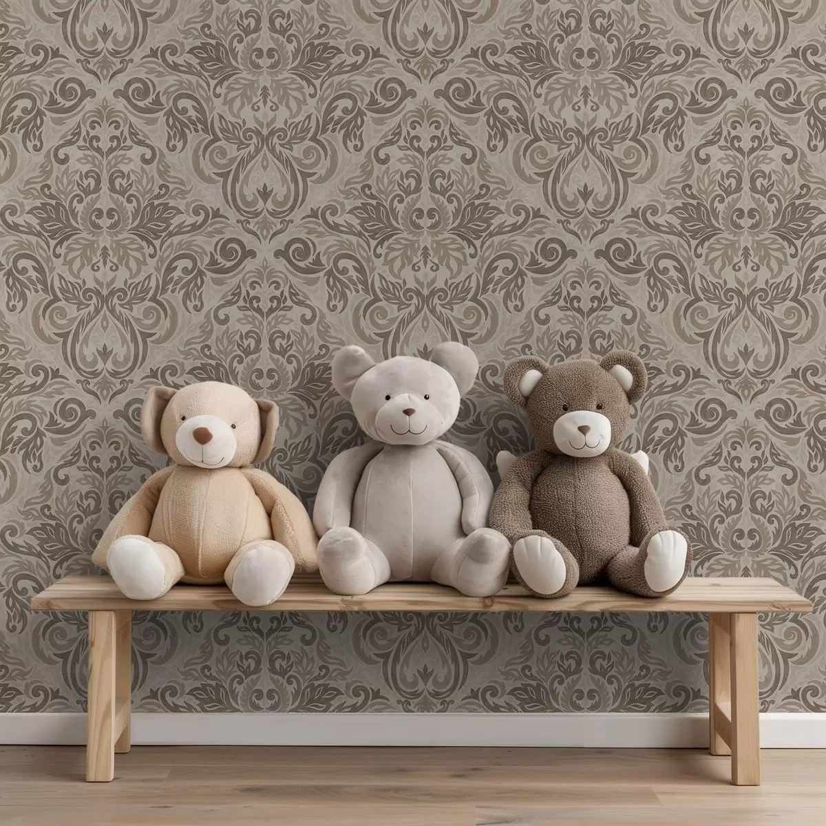 Tapetai Damaskas šiltų pilkai rudos spalvos tonais ant šviesaus fono Nr. a00826v3