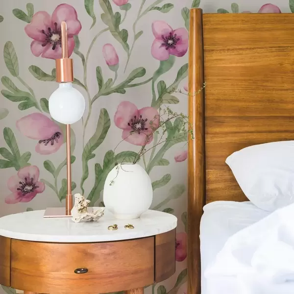 Tapetai Subtilūs rožiniai aguonai su lapais, tapyti akvarele Nr. a00830