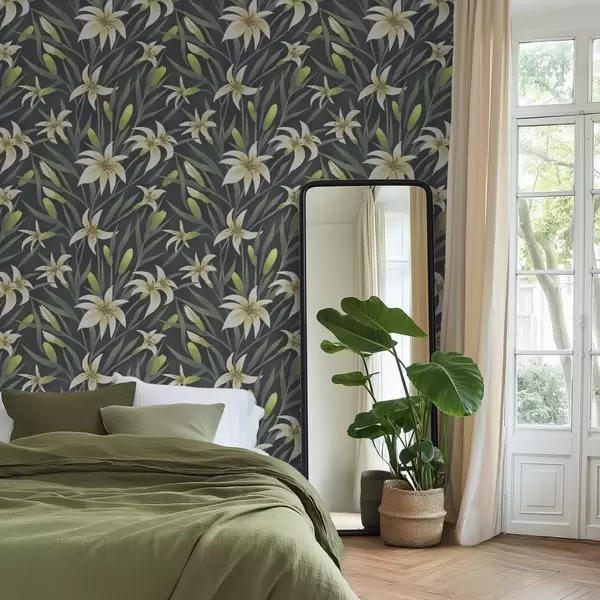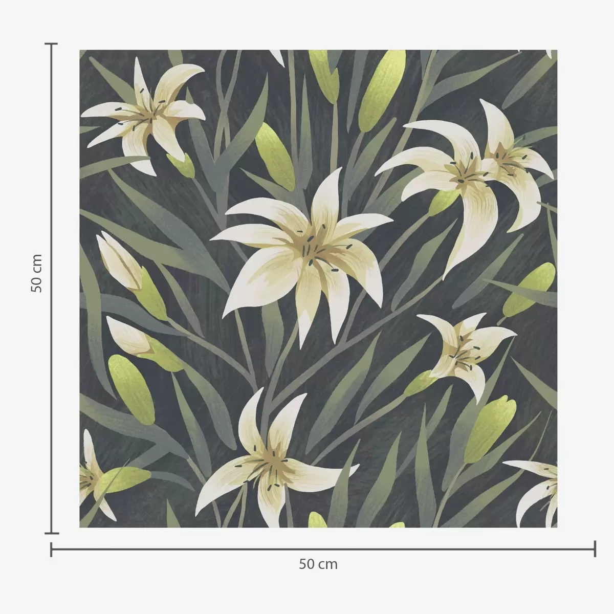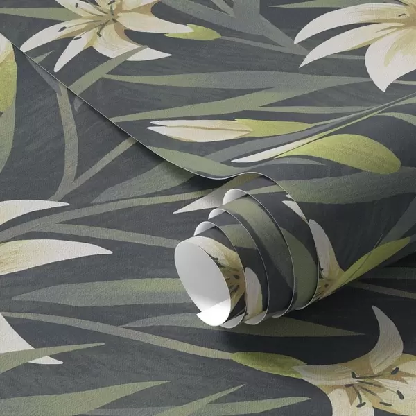 Tapetai Kreminės lelijos su lapais ant tamsaus fono Nr. a00837v1