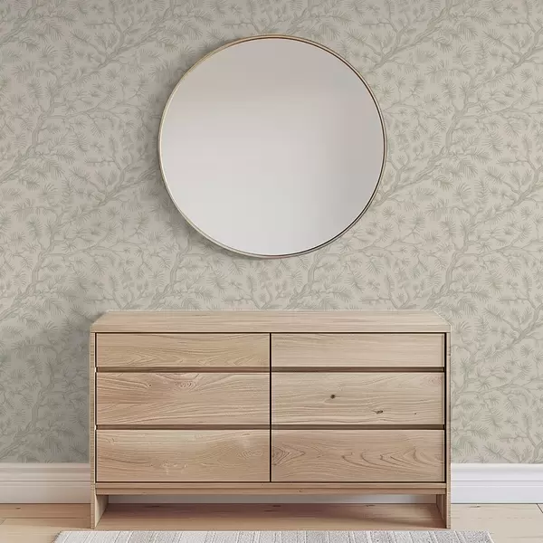 Tapetai Šviesiai žalios spalvos pušų šakos ant smėlio spalvos fono Nr. a00838v1
