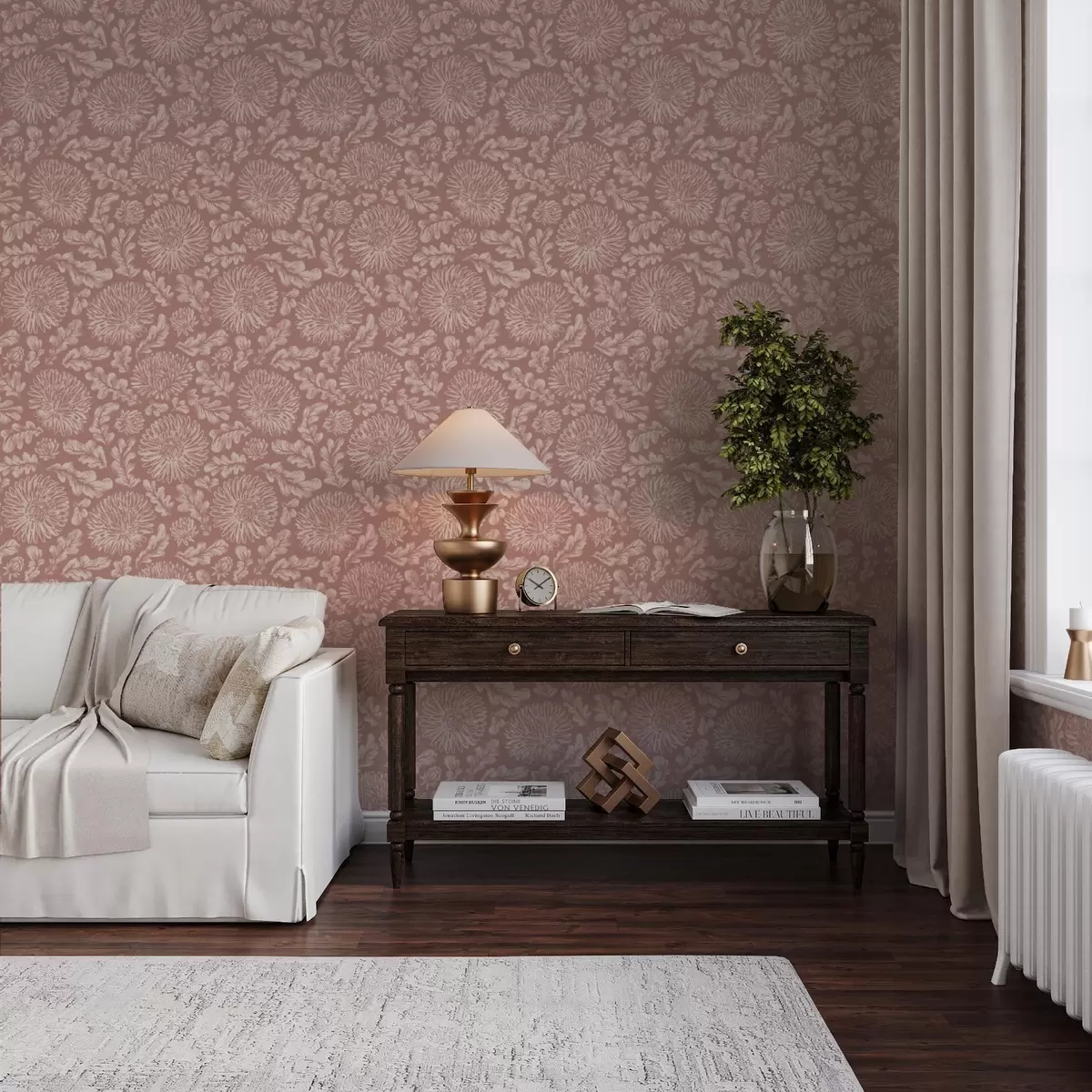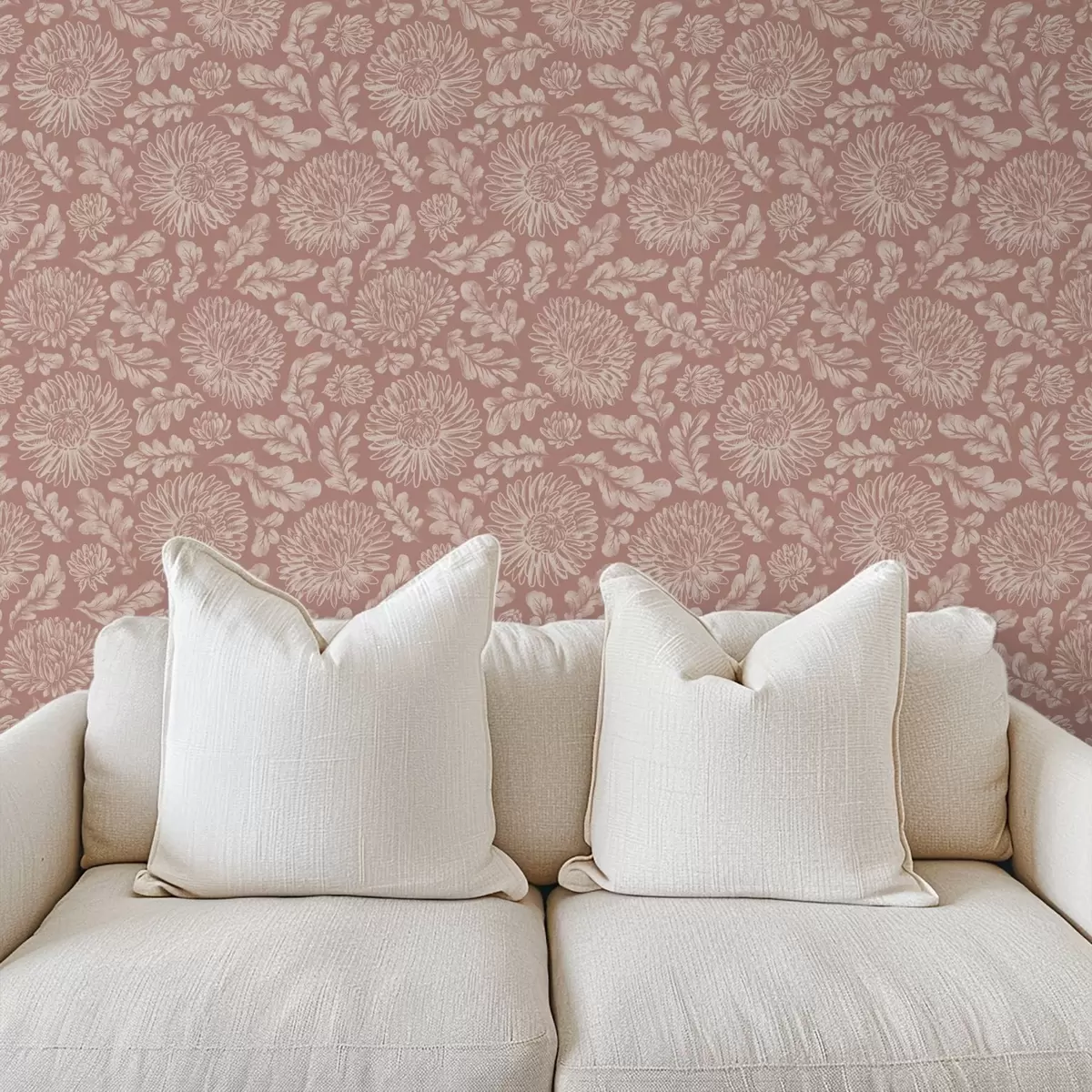 Tapetai Kreminės chrizantemos ant dulkės rožinės spalvos fone Nr. a00840v2