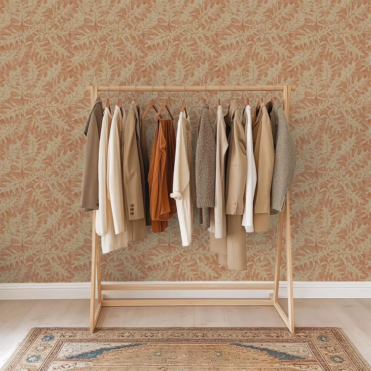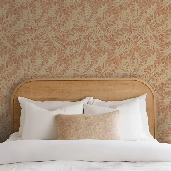Tapetai Didelės ąžuolo lapai iš terakotos ant kreminės spalvos fono Nr. a00846