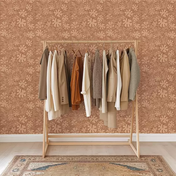 Tapetai Lauko lapai ir žolės terakotos-smėlio spalvų paletėje Nr. a00847