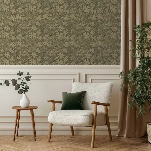 Tapetai Lauko lapai ir žolės pilkai-alyvuogių atspalvių Nr. a00847v1