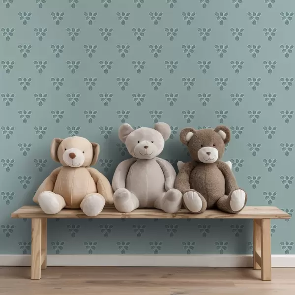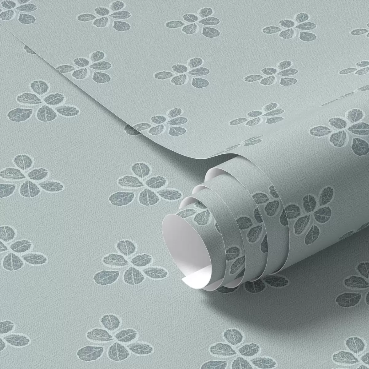 Tapetai Mažas pakartojimas: lapų trejetai ant vėsaus mėlyno fono Nr. a00848v1