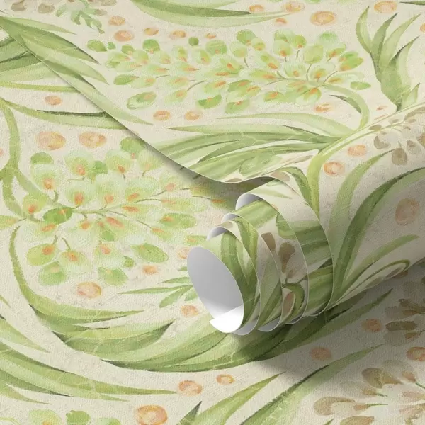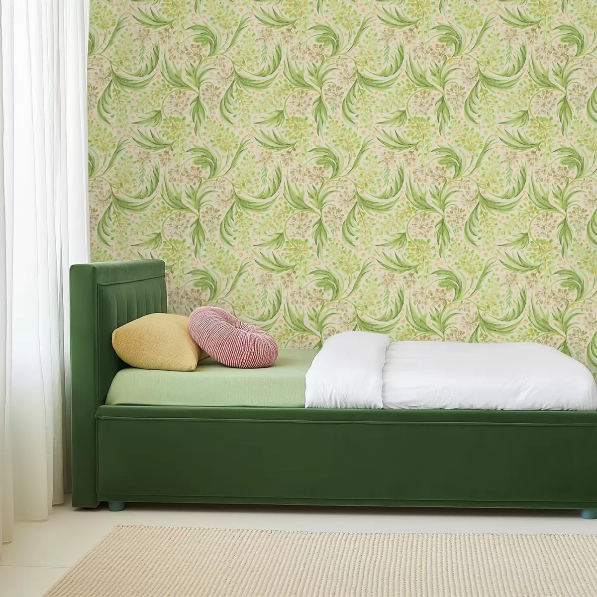 Tapetai Šviesus gėlių raštas švelniais žaliais atspalviais Nr. a00853