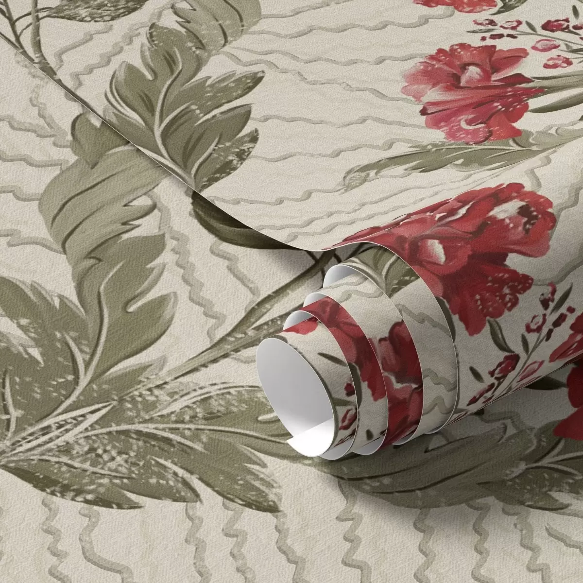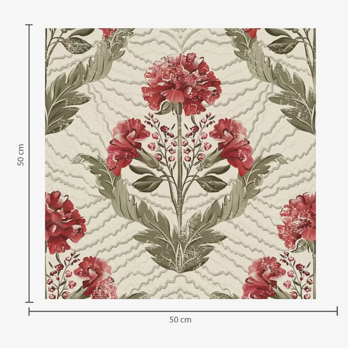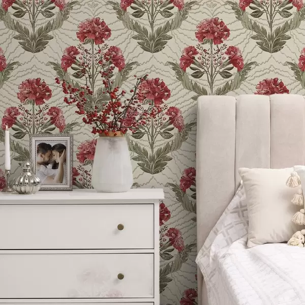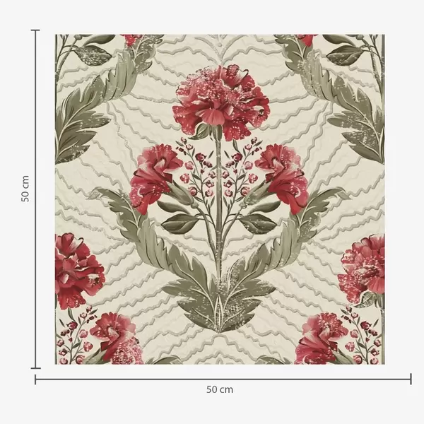 Tapetai Didelės raudonos bijūnės su grafinio fono, kreminės spalvos pagrindu Nr. a00857