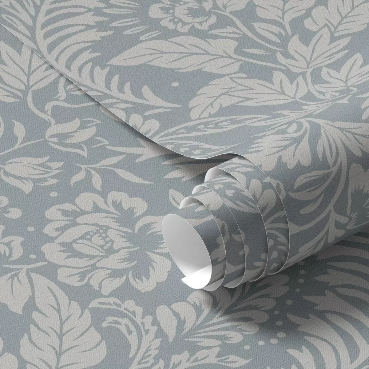 Tapetai Monochrominis gėlių raštas ant pilkai mėlyno fono Nr. a00859