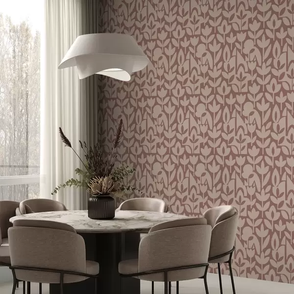 Tapetai Geometriniai gėlių siluetai terakotos ir kreminės spalvos Nr. a00875v2