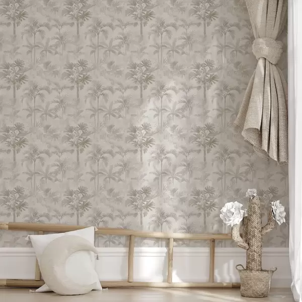Tapetai Rūko apgaubtas palmių giraitė šiltų smėlio atspalvių Nr. a00881