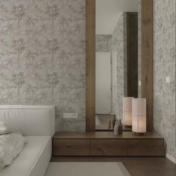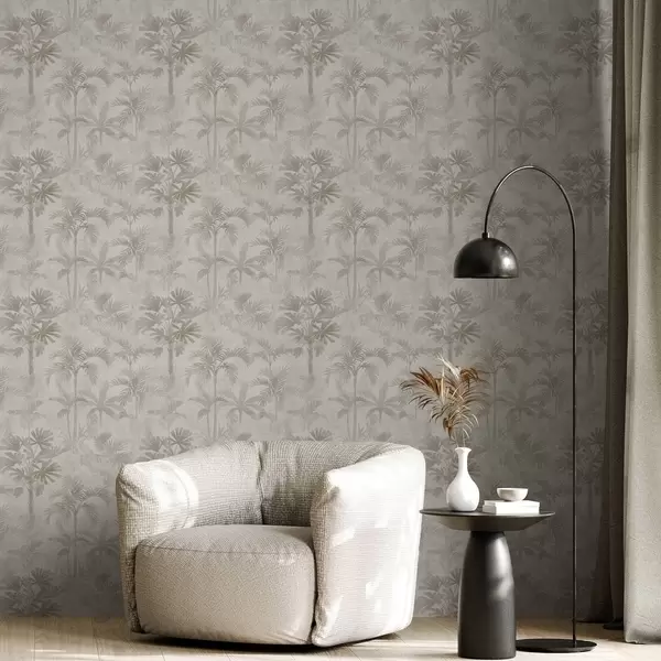 Tapetai Rūko apgaubtas palmių giraitė šiltų smėlio atspalvių Nr. a00881