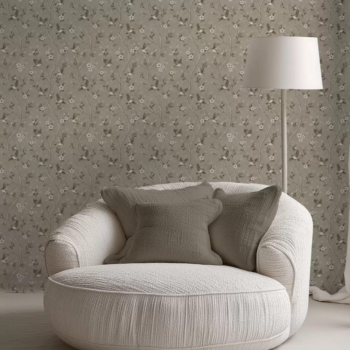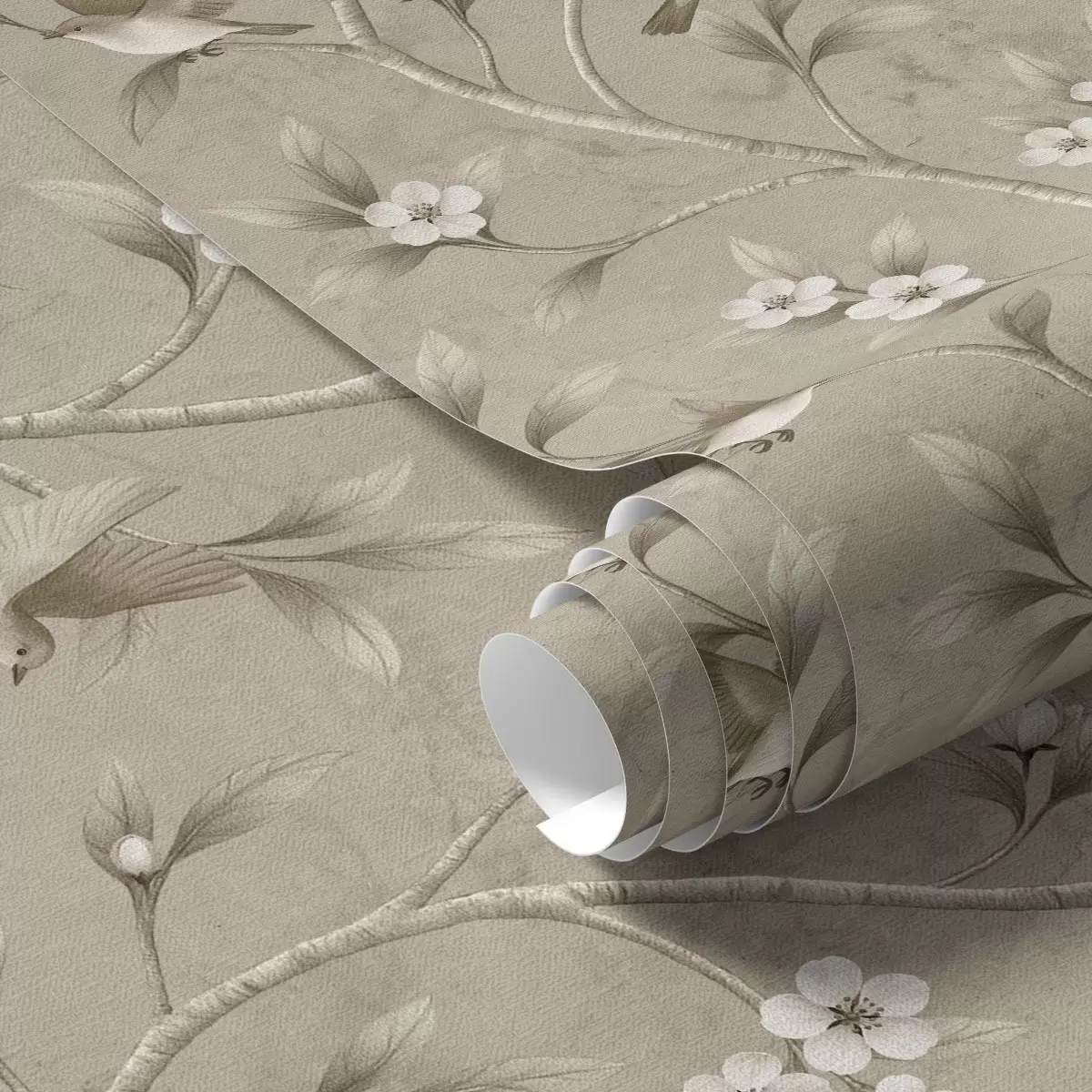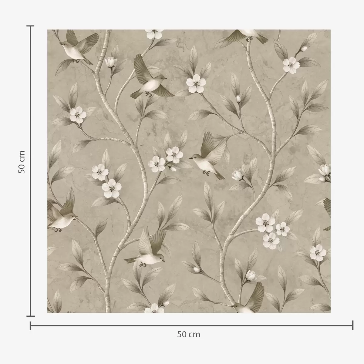 Tapetai Paukščiai ir žydintys šakos šiltų sepijos atspalvių Nr. a00882