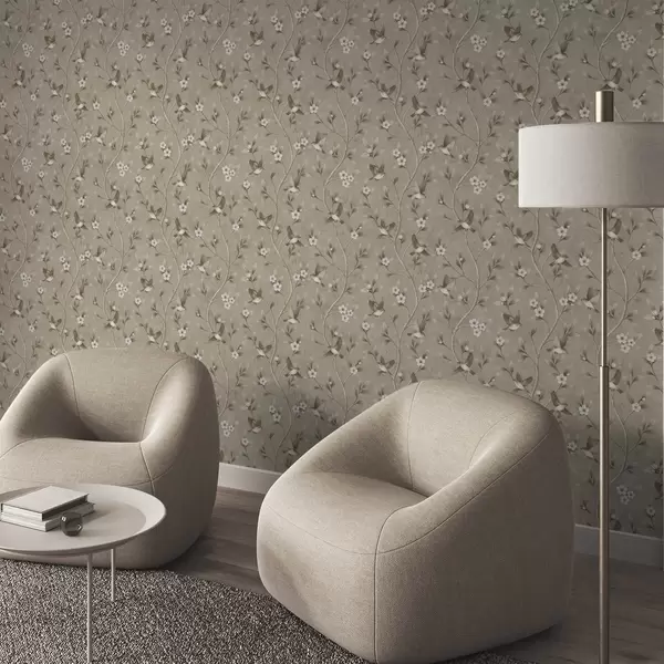 Tapetai Paukščiai ir žydintys šakos šiltų sepijos atspalvių Nr. a00882