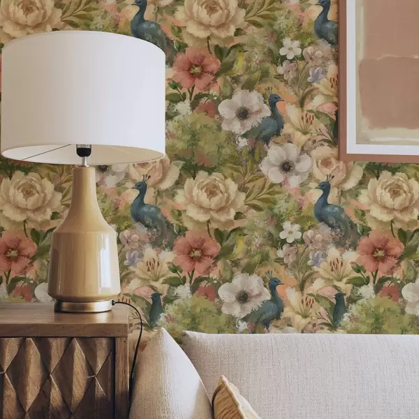 Tapetai Tapybinis sodas su povais ir dideliais žiedais Nr. a00885