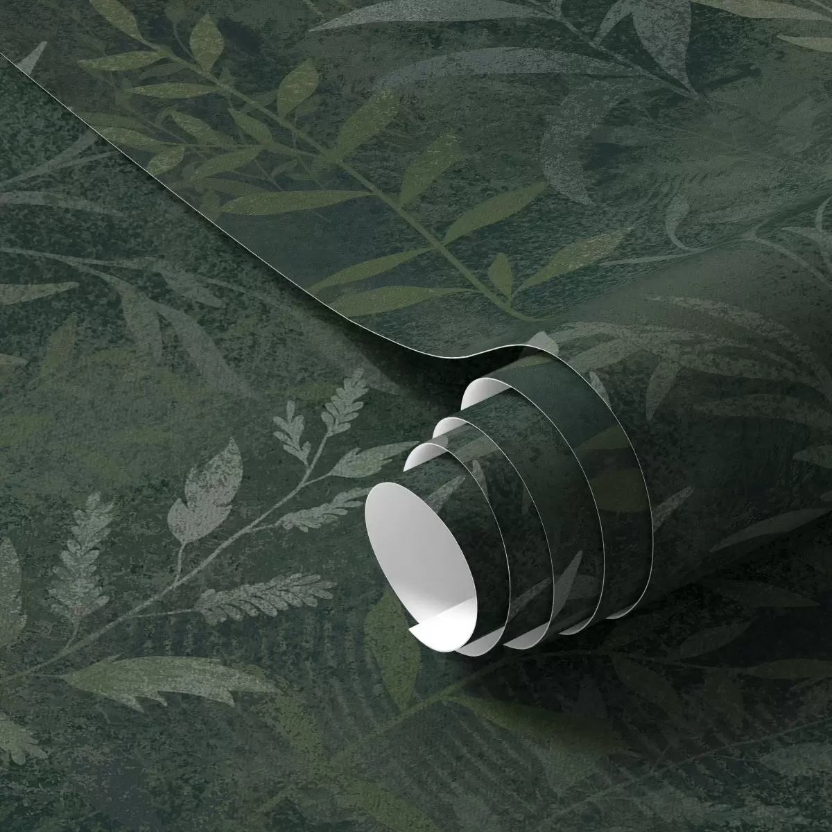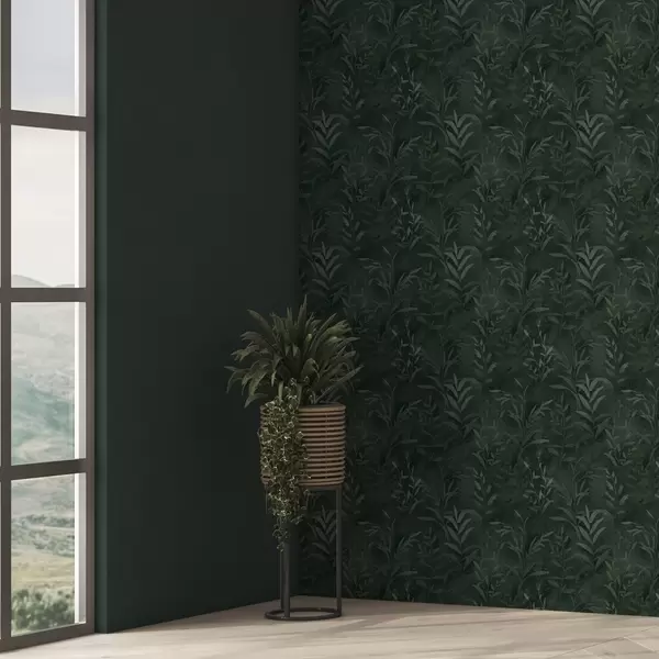 Tapetai Tamsiai žalias fonas su permatomomis lapų šakomis Nr. a00888