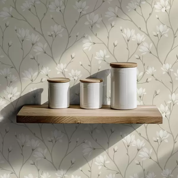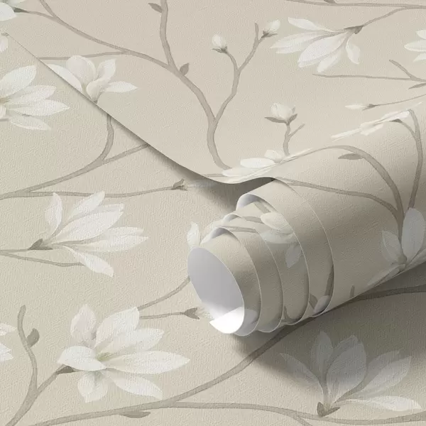 Tapetai Šviesios magnolijos ant plonų smėlio spalvos šakų Nr. a00890