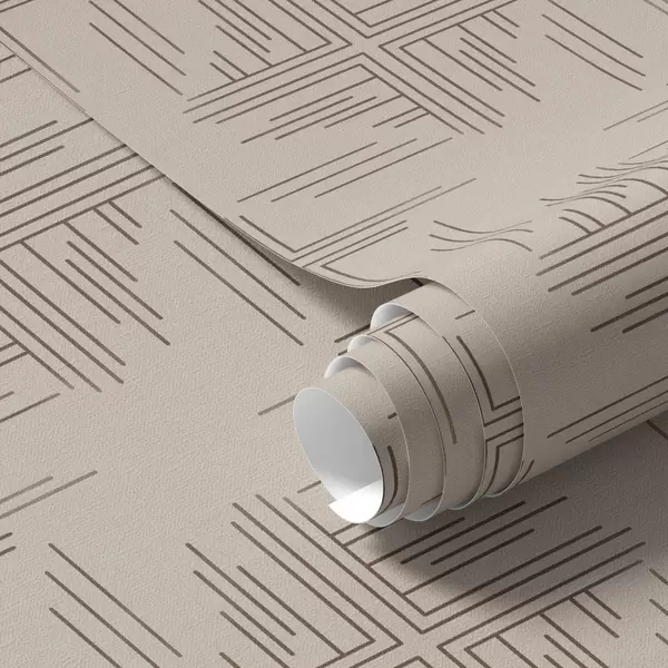 Tapetai Kakavos linijų tinklelis su mažais centriniais kryželiais, smėlio spalvos Nr. a00911