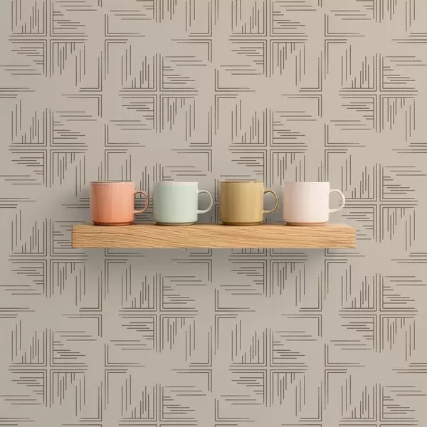 Tapetai Ofsetiniai kakavos kampiniai blokai su išsklaidytomis linijomis, smėlio spalvos Nr. a00912