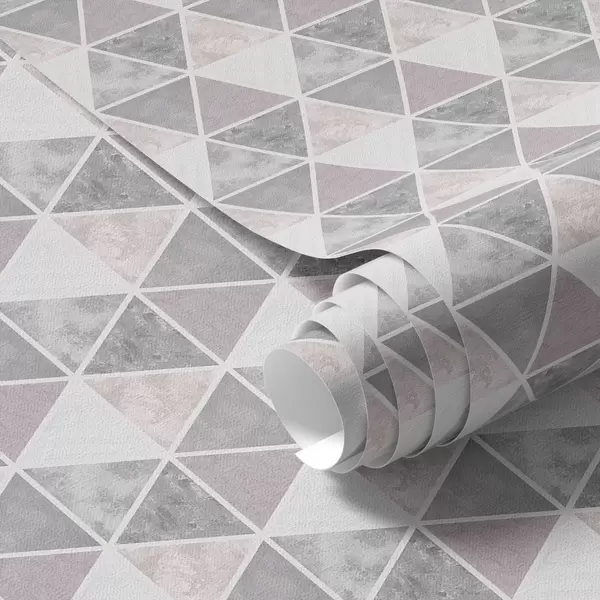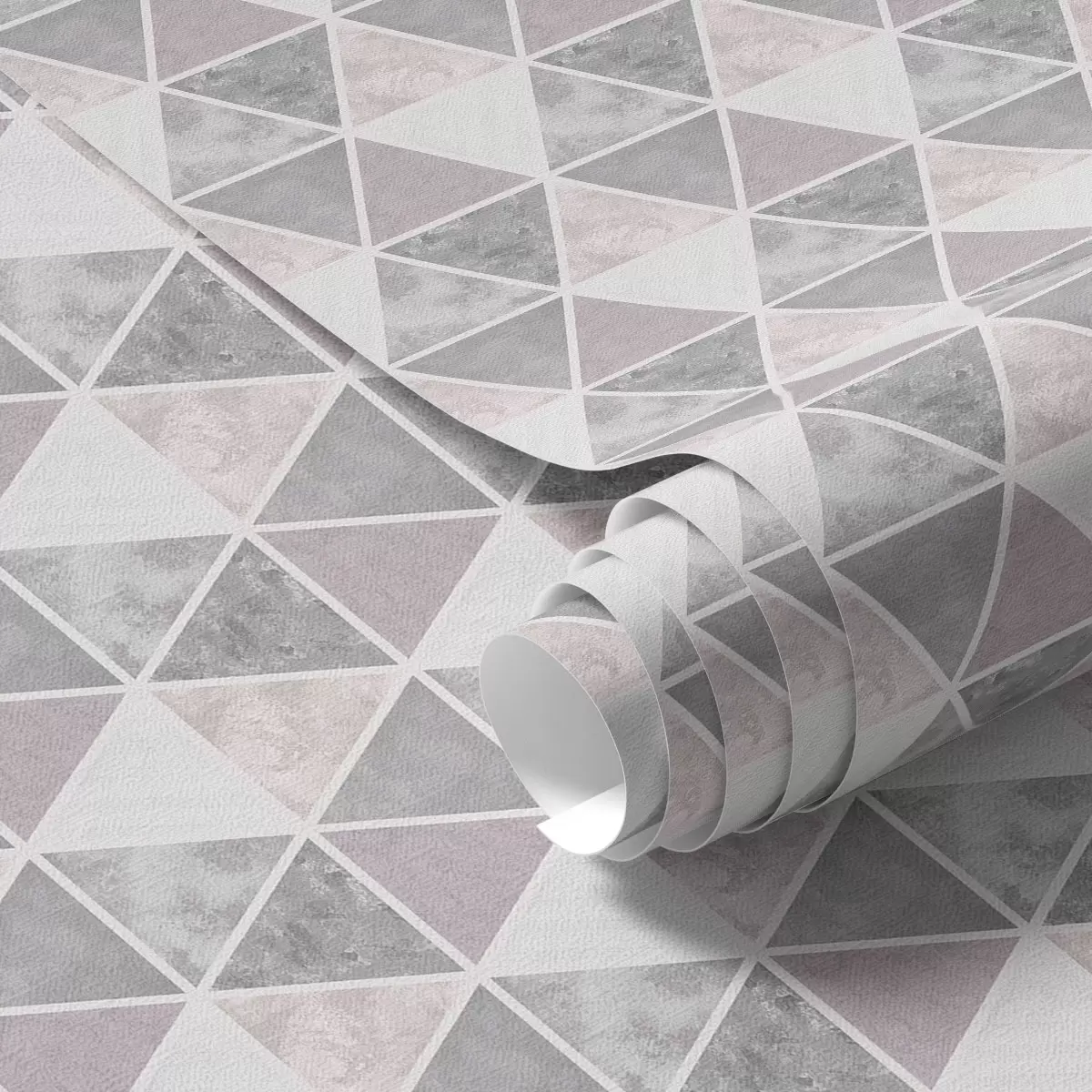 Tapetai Geometrinis trikampių raštas pilkos ir pudros spalvų tonais Nr. a00920