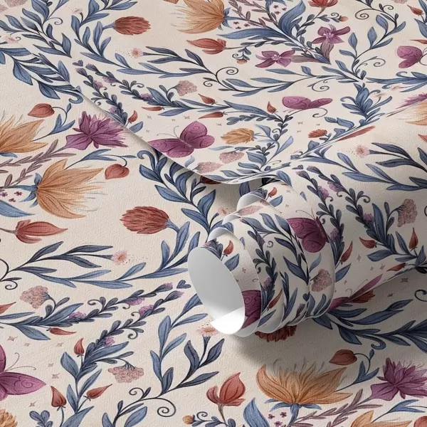 Tapetai Gėlių damastas su drugeliais ant švelnaus persikų fono Nr. a00926