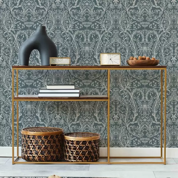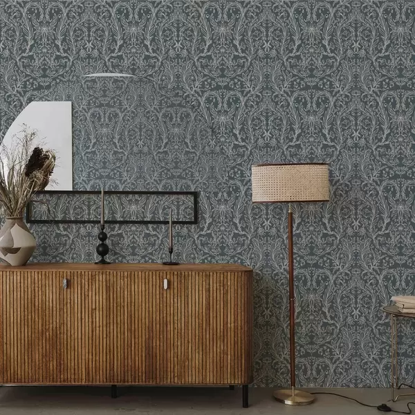 Tapetai Linijinis gėlių ornamentas ant melsvai pilko fono Nr. a00929v1