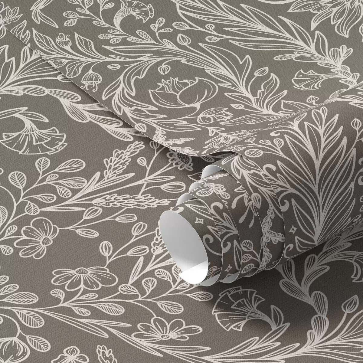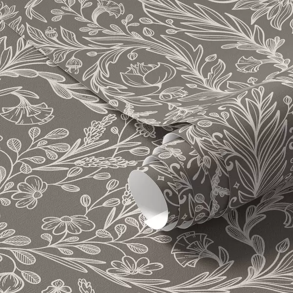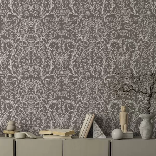 Tapetai Monochrominis botaninis raštas ant šiltos rudos spalvos fono Nr. a00929v2