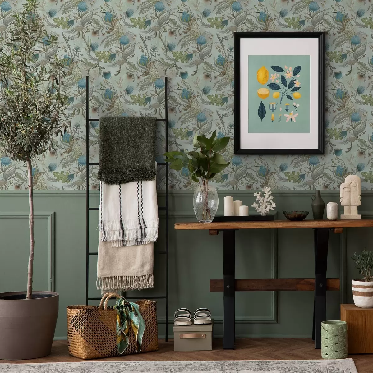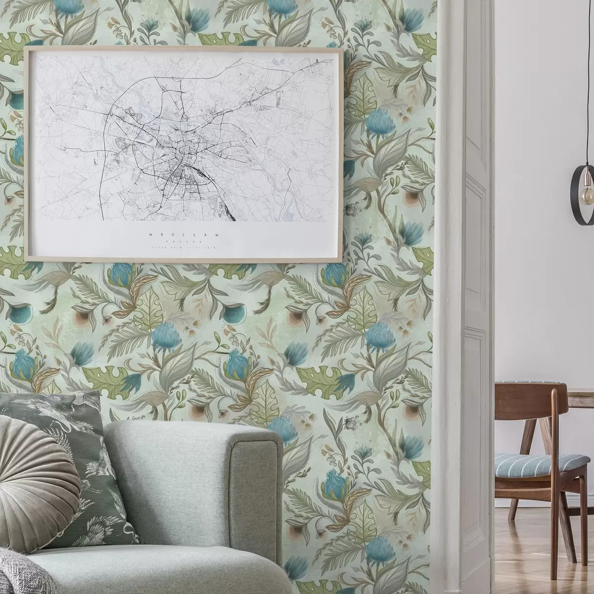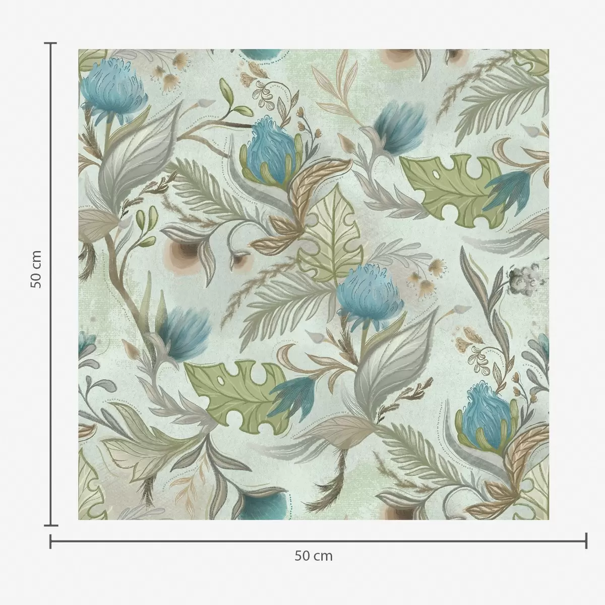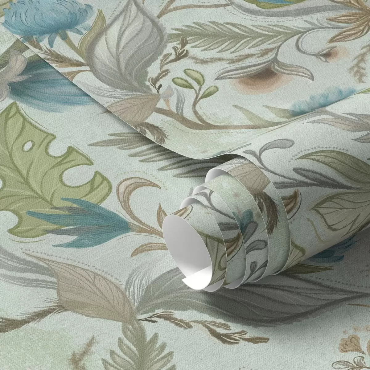 Tapetai Mėlynos gėlės ir žaluma ant švelnaus mėtų fono Nr. a00930v1