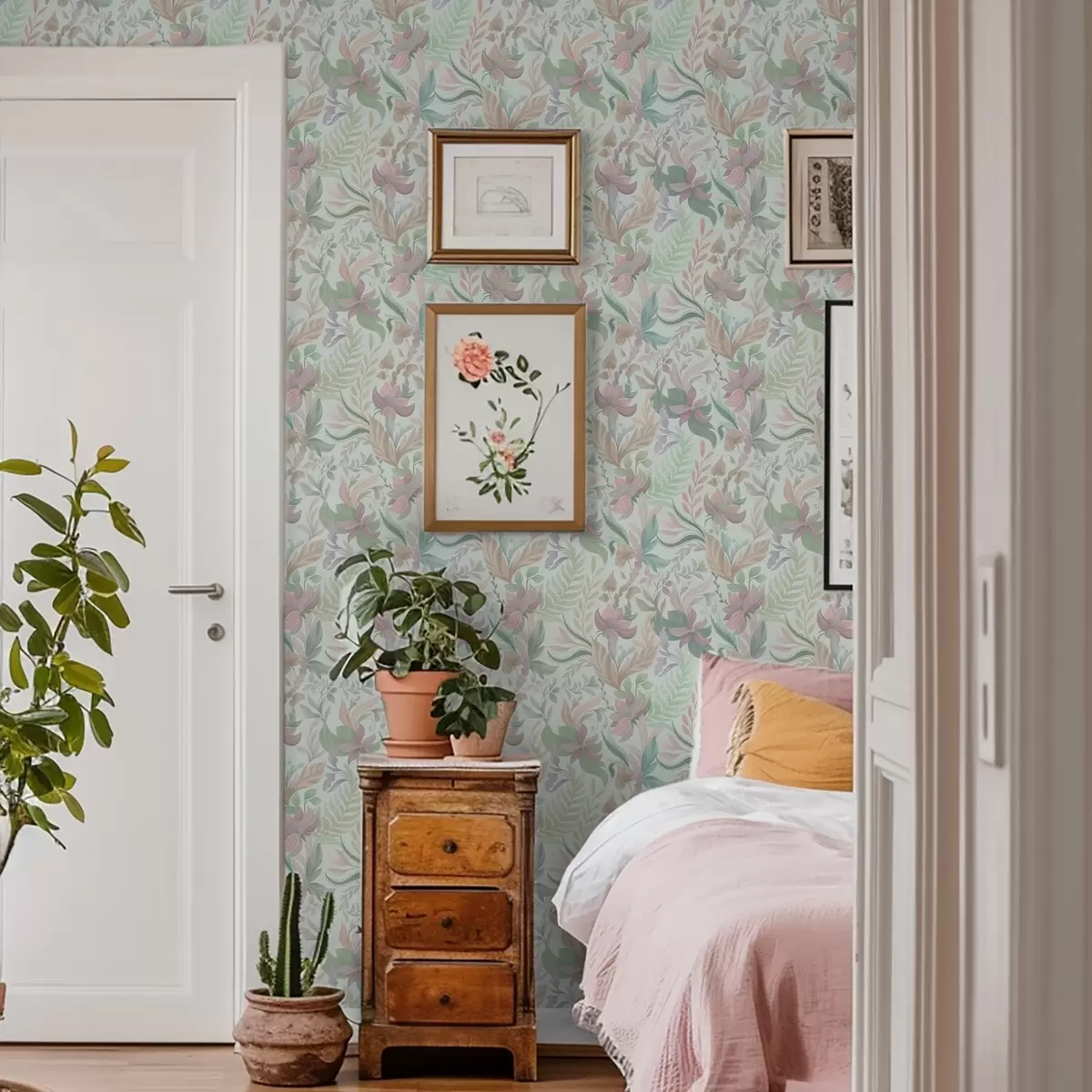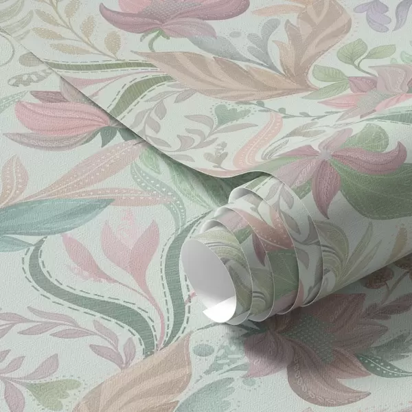 Tapetai Pasteliniai gėlių raštai ant švelnaus mėtų fono Nr. a00931v1