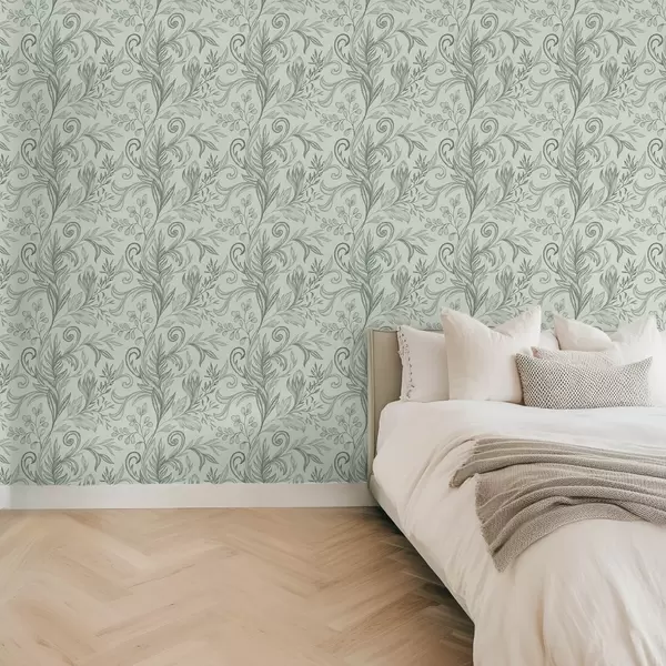 Tapetai Minkšti mėtų susirangę lapai, puošti subtiliais pilkai žaliais dryželiais Nr. a00935v3