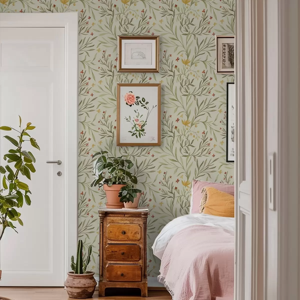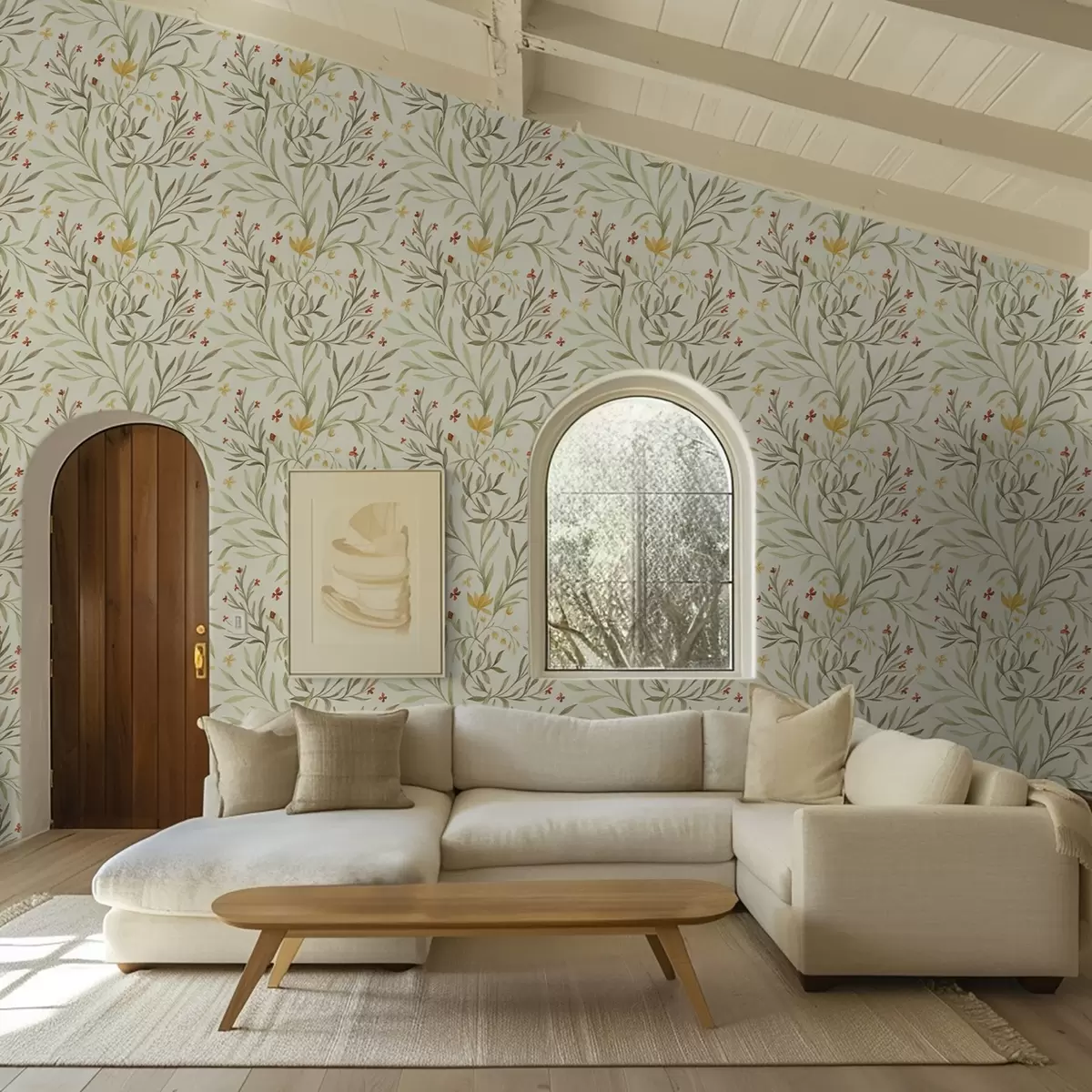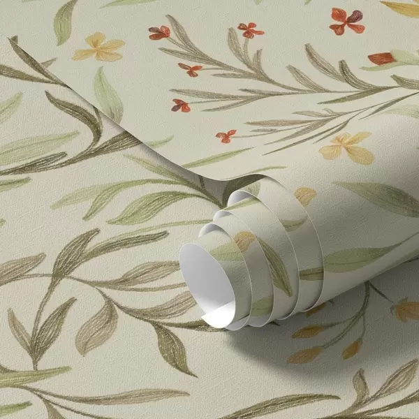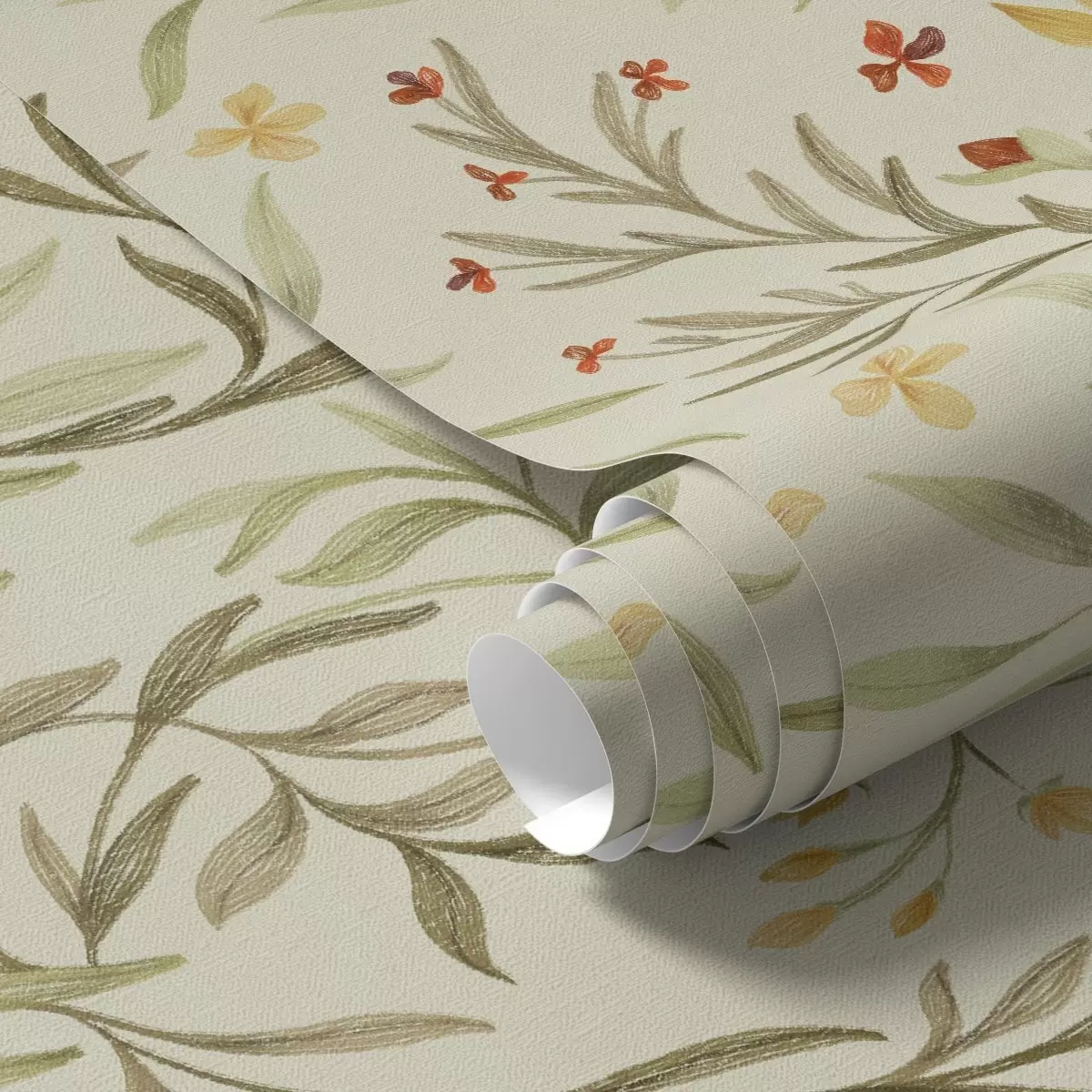 Tapetai Geltonos ir raudonos gėlės ant šviesiai žalsvo fono Nr. a00937