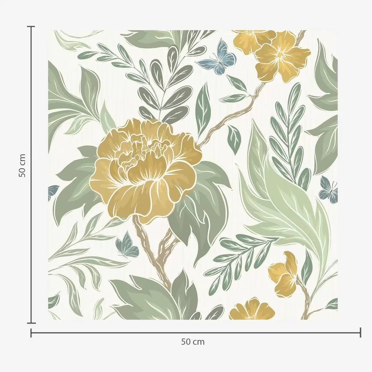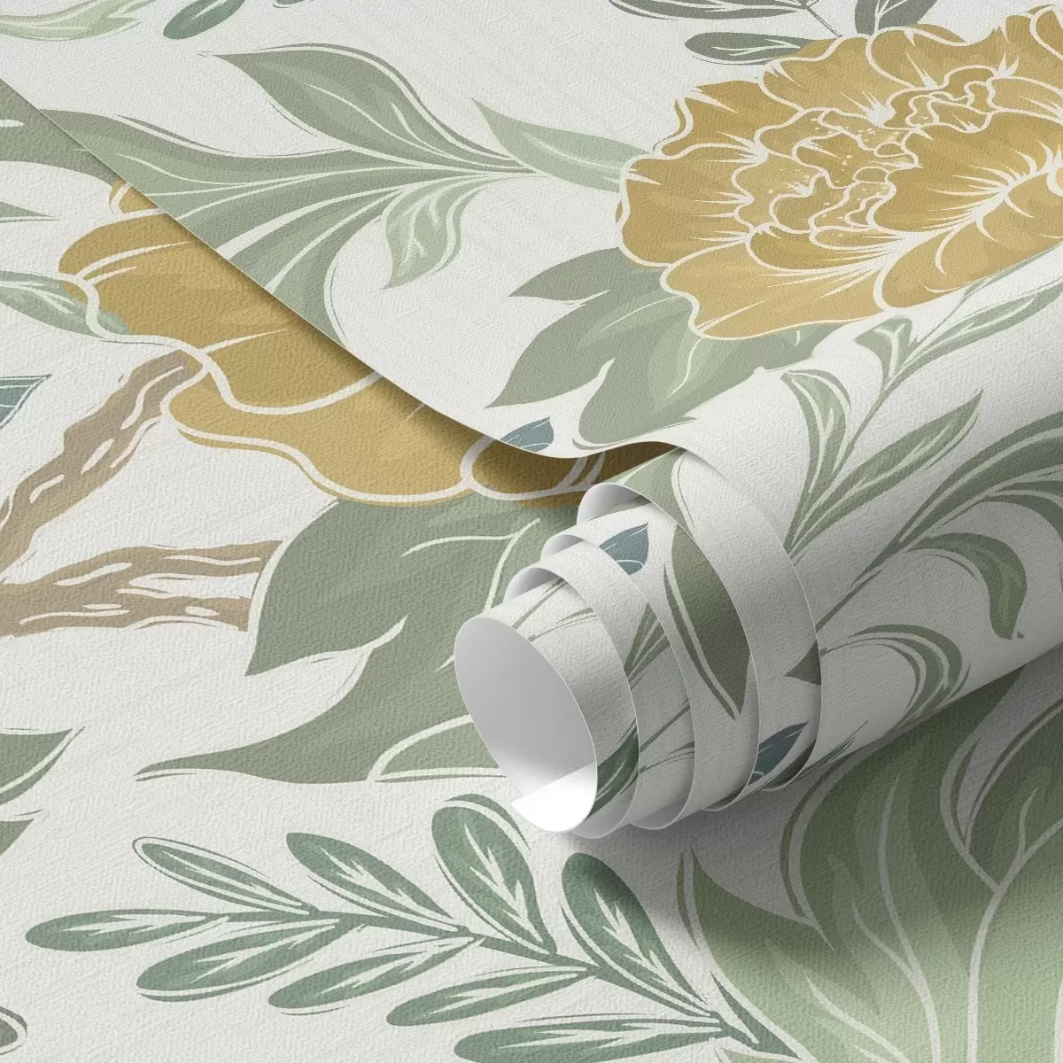 Tapetai Didelės geltonos bijūnės ir žaluma ant šviesaus fono Nr. a00941