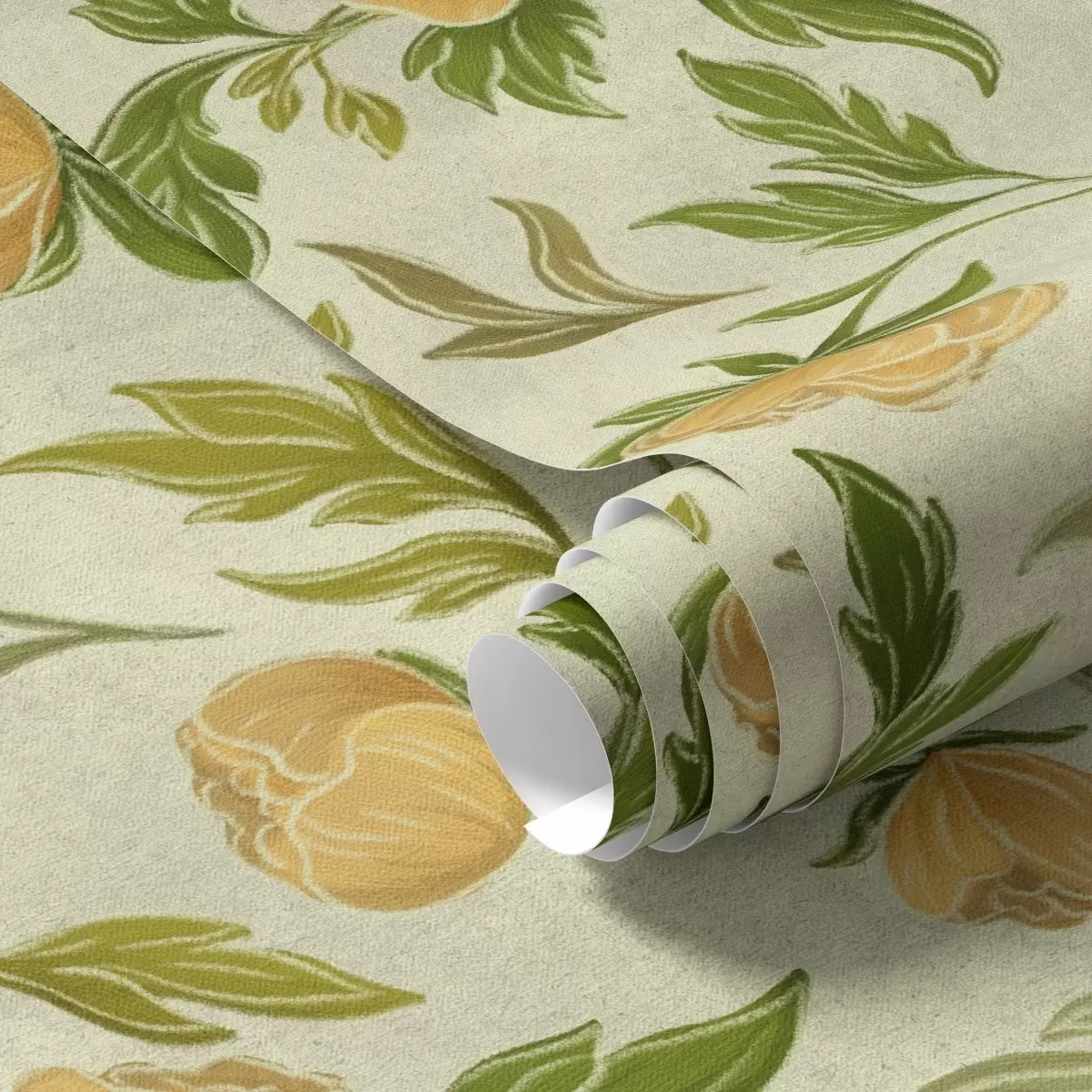 Tapetai Geltonos bijūnės ir lapai ant švelnaus šviesiai žalios spalvos fono Nr. a00942