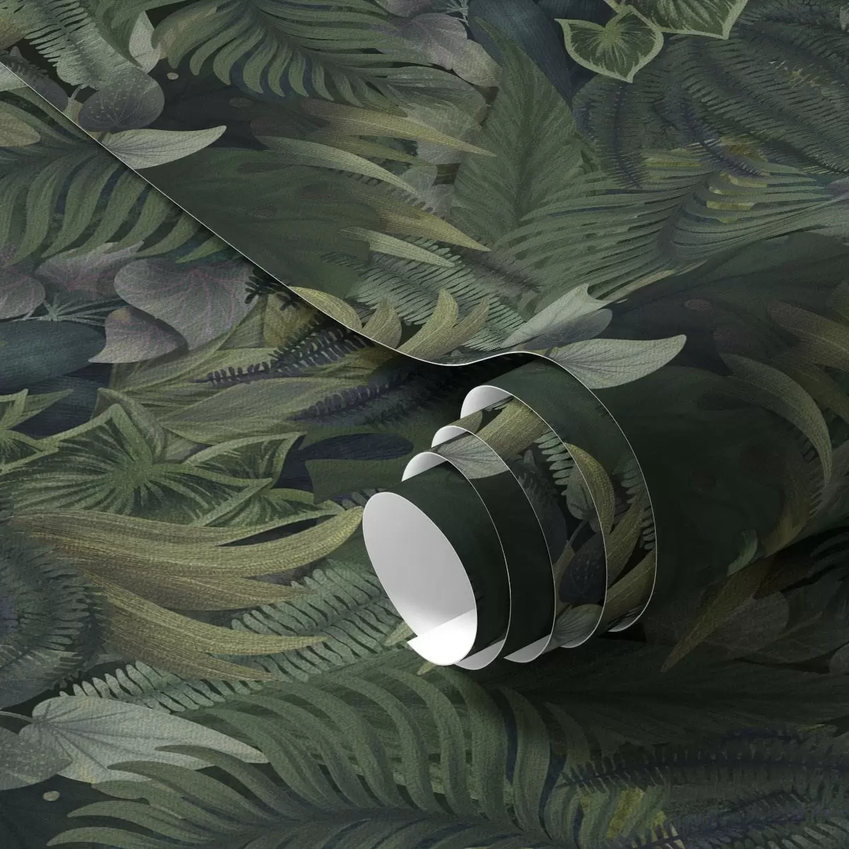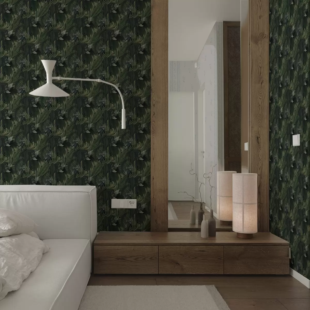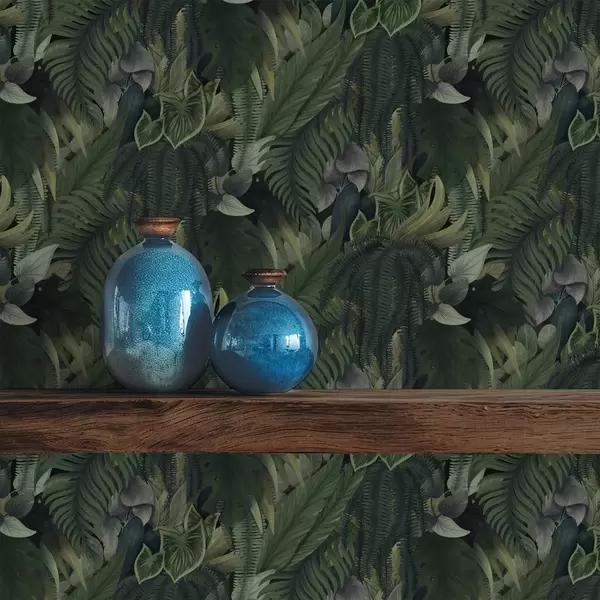 Tapetai Tankūs tropiniai lapai tamsiai žaliuose krūmuose Nr. a00943